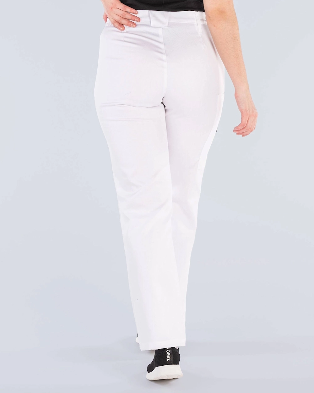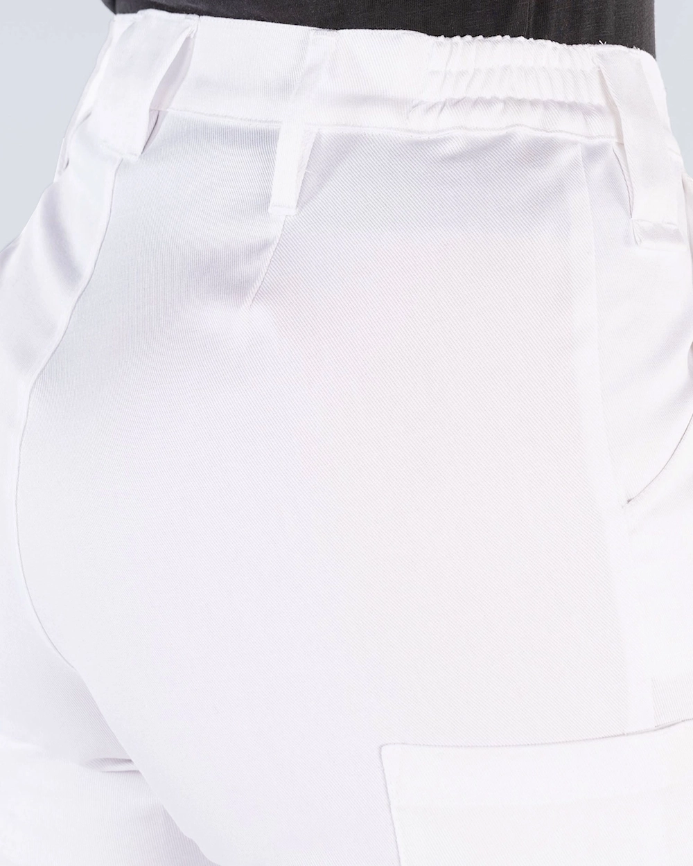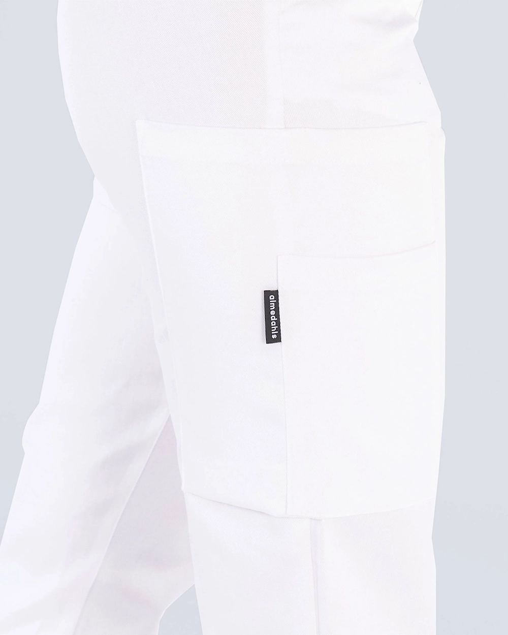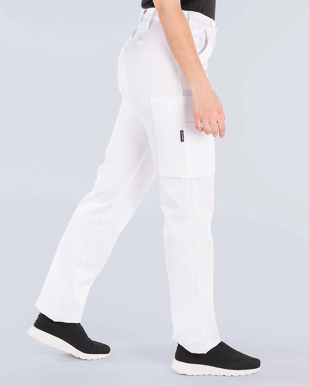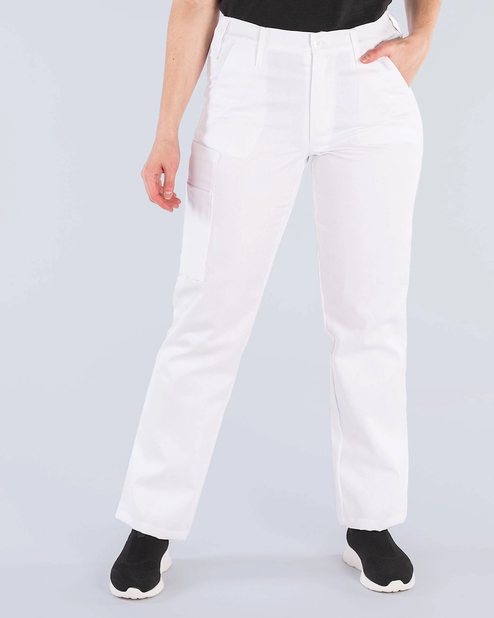 Arbeidsbukse i 100% bomull med komfortable detaljer som justerbar linning og innfelt elastikk på sidene. Buksene har sidelommer og en romslig benlomme med borrelås og en ekstra lomme på utsiden.
