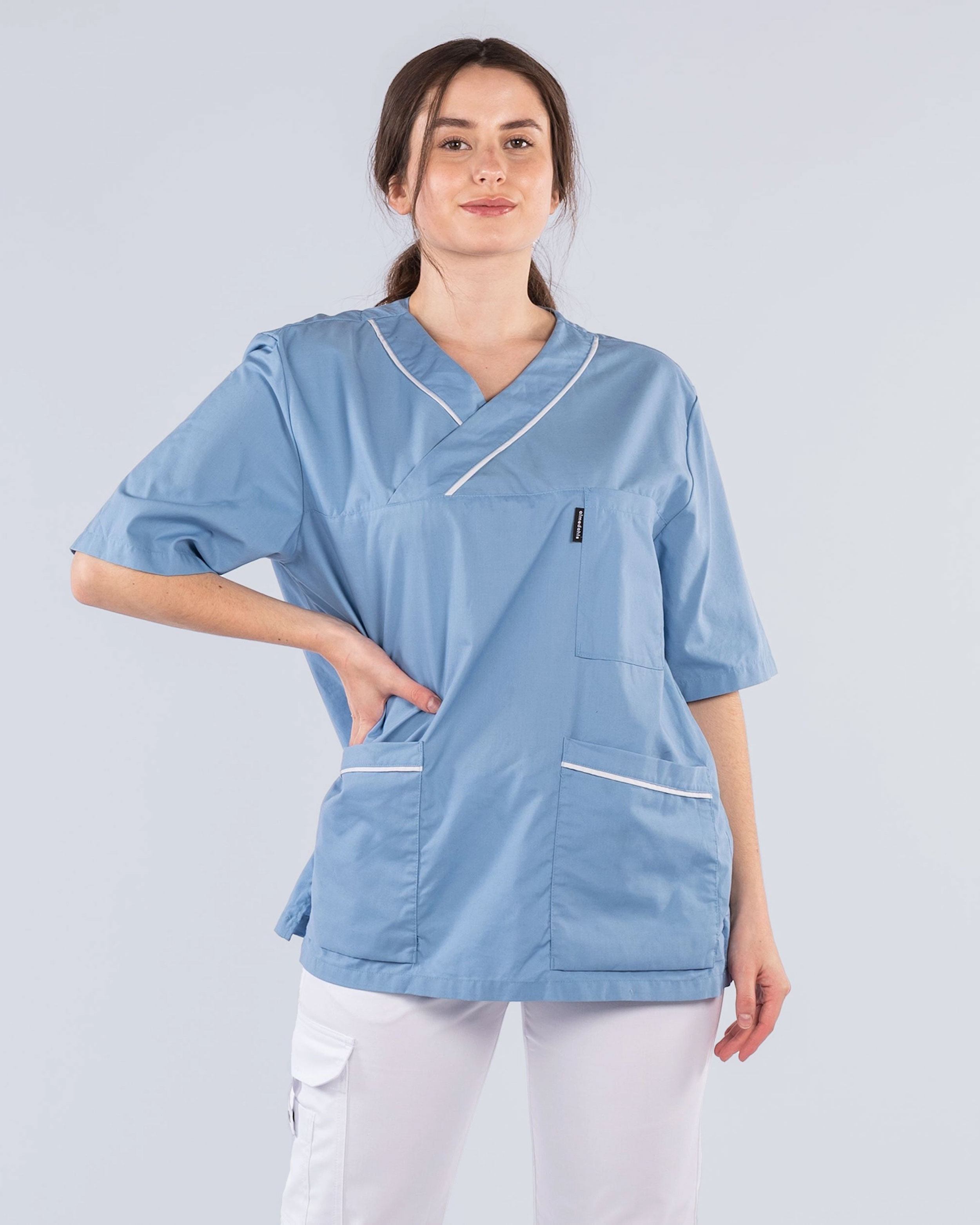 Almedahls Lyseblå/Hvit V-bluse Unisex