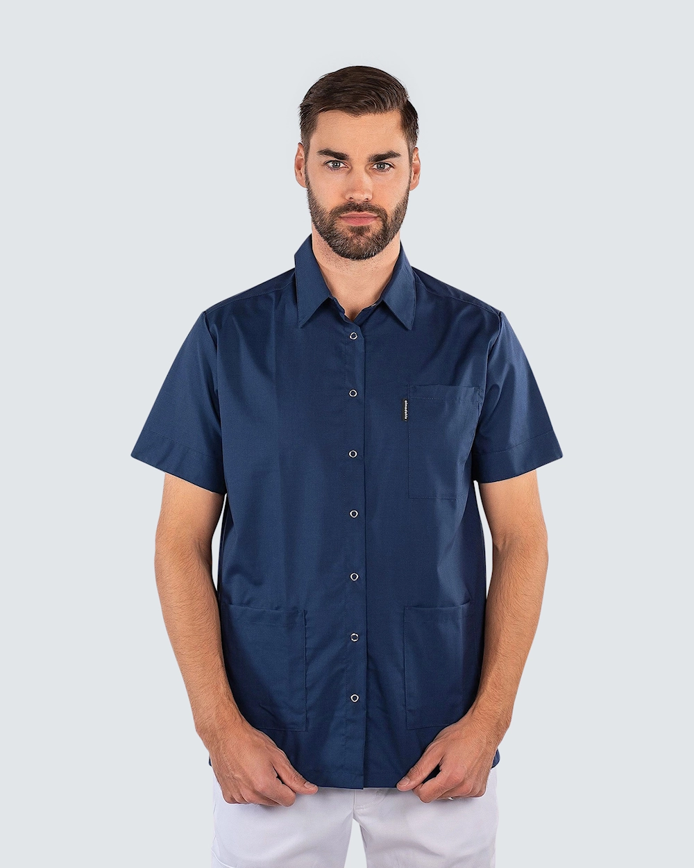 Behagelig skjorte i unisex modell med krage og hel knepping foran med trykkeknapper. Skjorten har romslige lommer med godt om plass for diverse arbeidsutstyr. Med bevegelsesfold baktil og splitt i siden får du ekstra bevegelsesfrihet og en fin arbeidsskjorte med god passform.