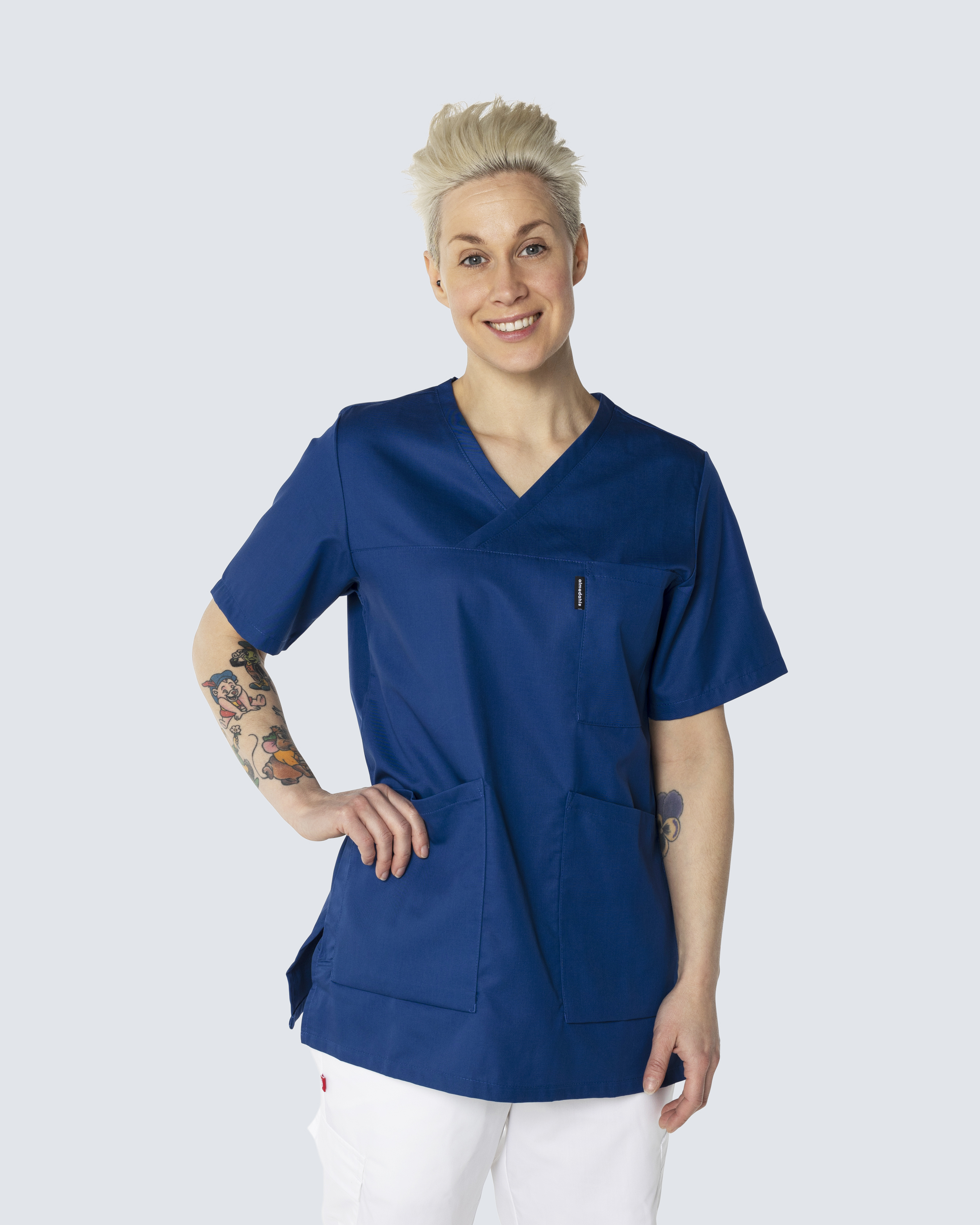 Tunika i damemodell med korte ermer og V-hals. En brystlomme, en mobillomme og to sidelommer gir plass til diverse hjelpemiddel og utstyr. Splitt i sidene gir optimal bevegelsesfrihet. Tunikaen er laget av 50 % Tencel, noe som gir høy pusteevne og luftig komfort.