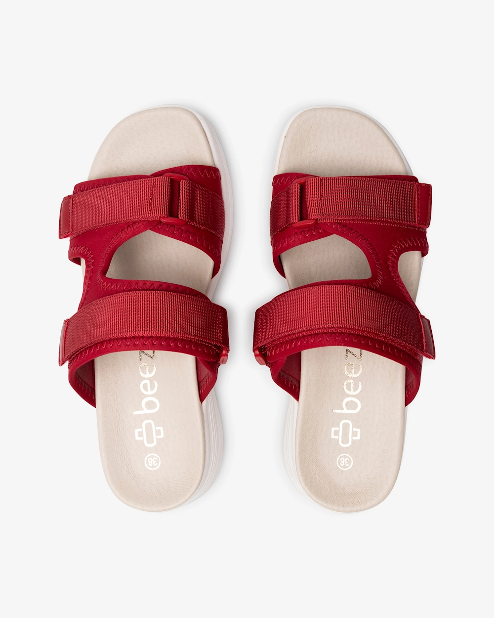 Komfortabel og dempende lettvektssandal i slip-in-modell med en robust og stabil såle i slitesterk og fleksibel EVA-gummi. To justerbare borrelåsremmer øverst som muliggjør individuell passform. Den myke fotsengen gir optimal komfort under lange dager på føttene, og den fleksible utformingen sørger for at sandalen sitter behagelig rundt foten. Stilrent og tidløst design som gjør sandalen velegnet til både jobb og fritid. Kan vaskes for hånd i maks. 30 ⁰C.