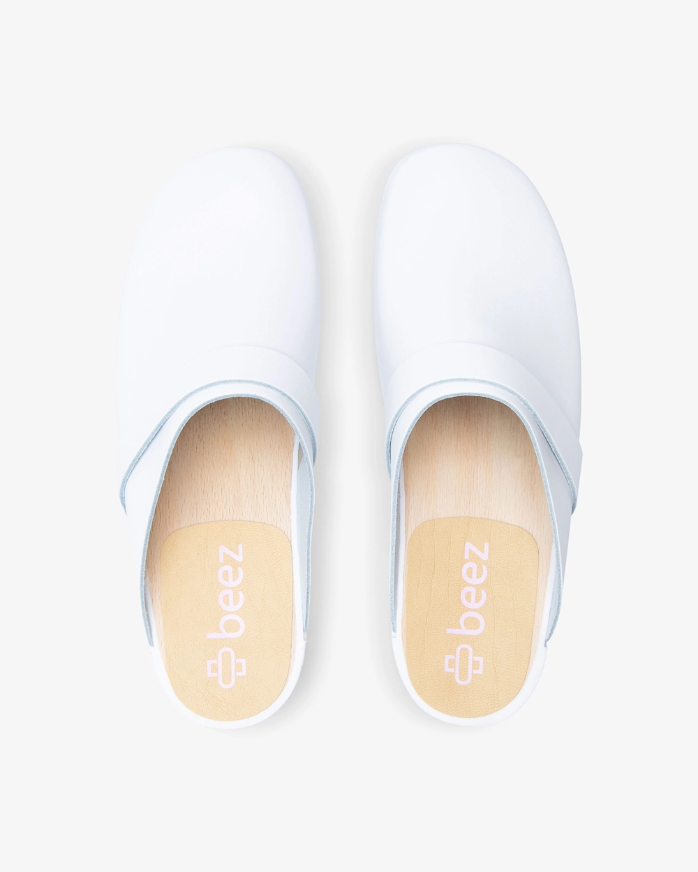 Beez Tradisjonell er en klassisk tresko i moderne farger og mønstre. Skoen har en stabil såle i PU med et innlegg av trefinér for å gi optimal støtte for føttene som står og går under lange arbeidsvakter. Skoen har en hard tå som beskytter mot lette smell. Med en overdel i PU-gummi kan du enkelt rengjøre og tørke av skoene - perfekt for deg som jobber i helsevesenet.