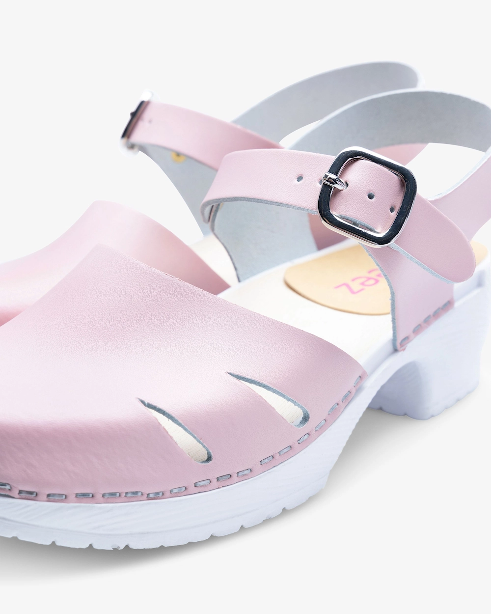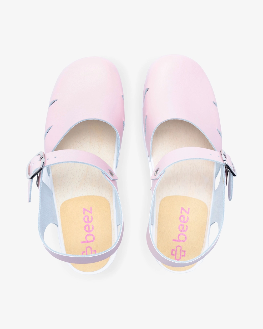 Beez Très Chic er en arbeidssko i et stilig design, tilpasset dine behov som helsepersonell. Skoen har en hæl stropp som holder skoen på plass og en justerbar stropp foran for individuell passform. Très Chic har en såle i stabil PU-gummi med et innlegg i tre for å gi stabil støtte for føtter som står og går mye i løpet av en arbeidsdag.