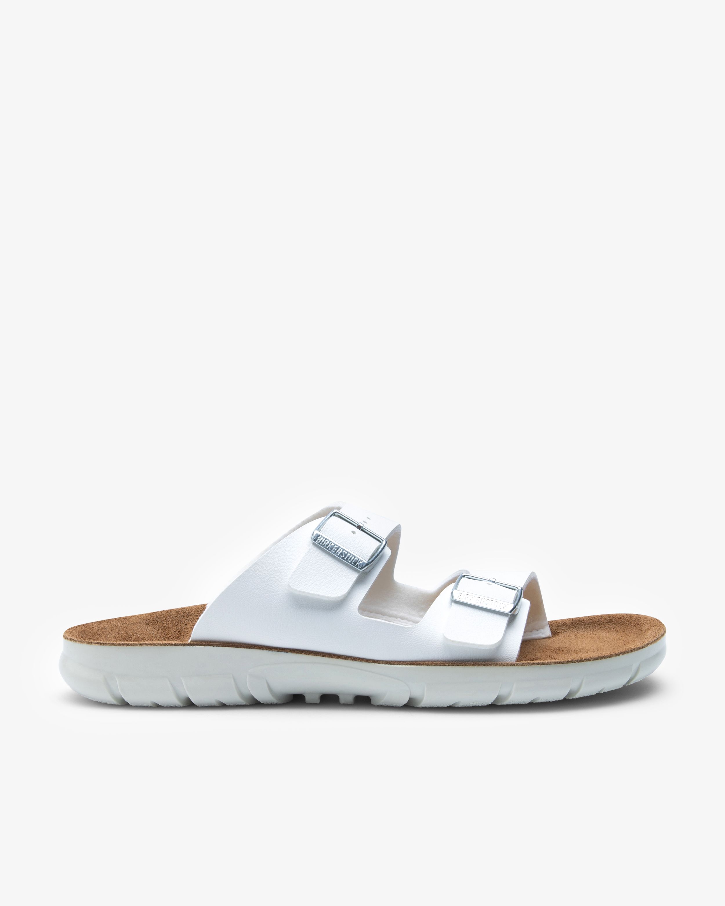 Birkenstock Bilbao Regular en komfortabel sandal i moderne design. Dens funksjon finner du i anti-skli sålen. Fotsengen er myk og anatomisk utformet. Overdelen består av et slitesterkt og lettstelt syntetisk materiale.