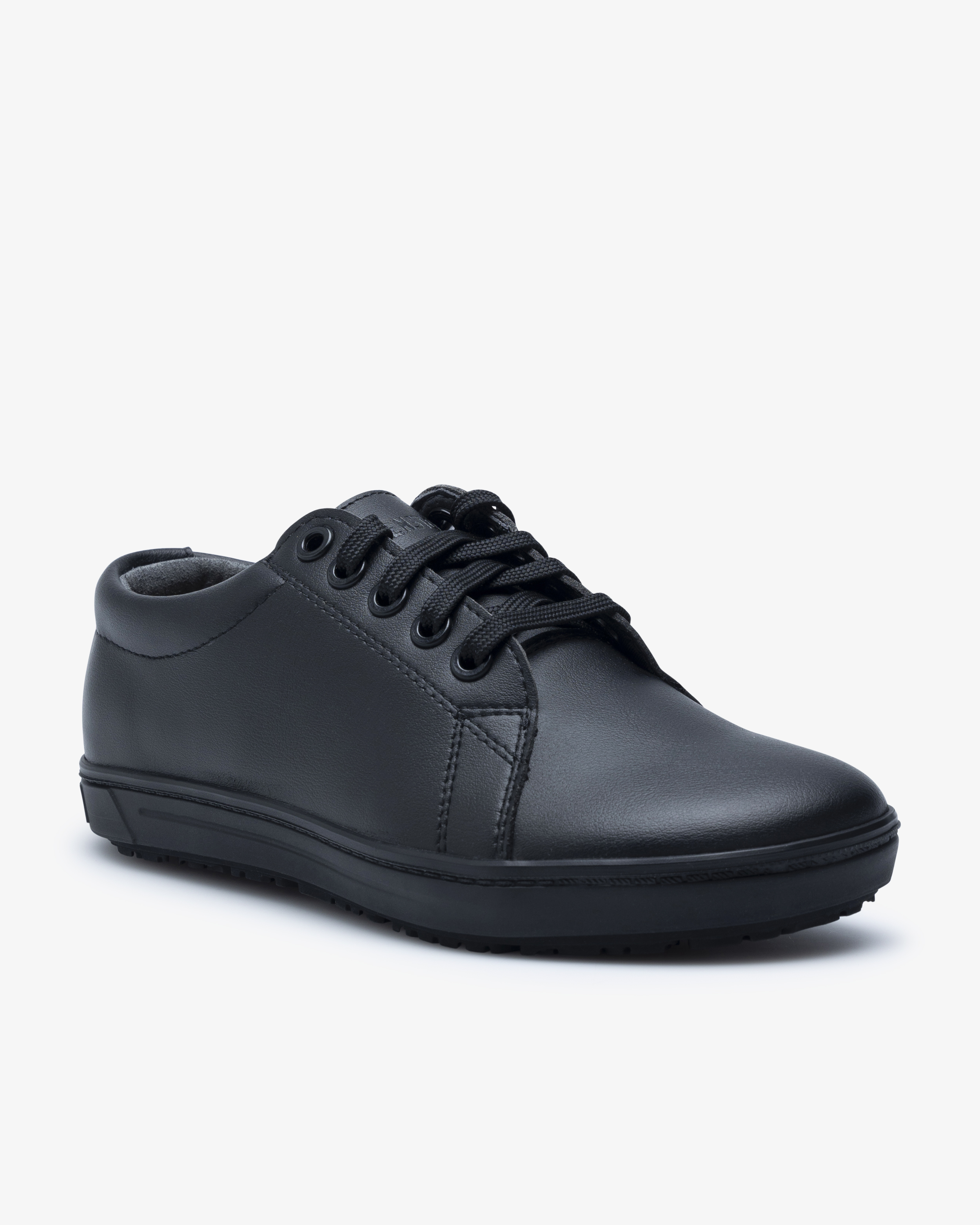 QO500 fra BIRKENSTOCK er en moderne og stilig snøresko som er utviklet for deg som jobber lange dager på beina - også i krevende miljøer. Den anatomisk formede fotsengen av kork og mikrofiber er utskiftbar og gir stabil støtte og effektiv avlastning gjennom hele arbeidsdagen.