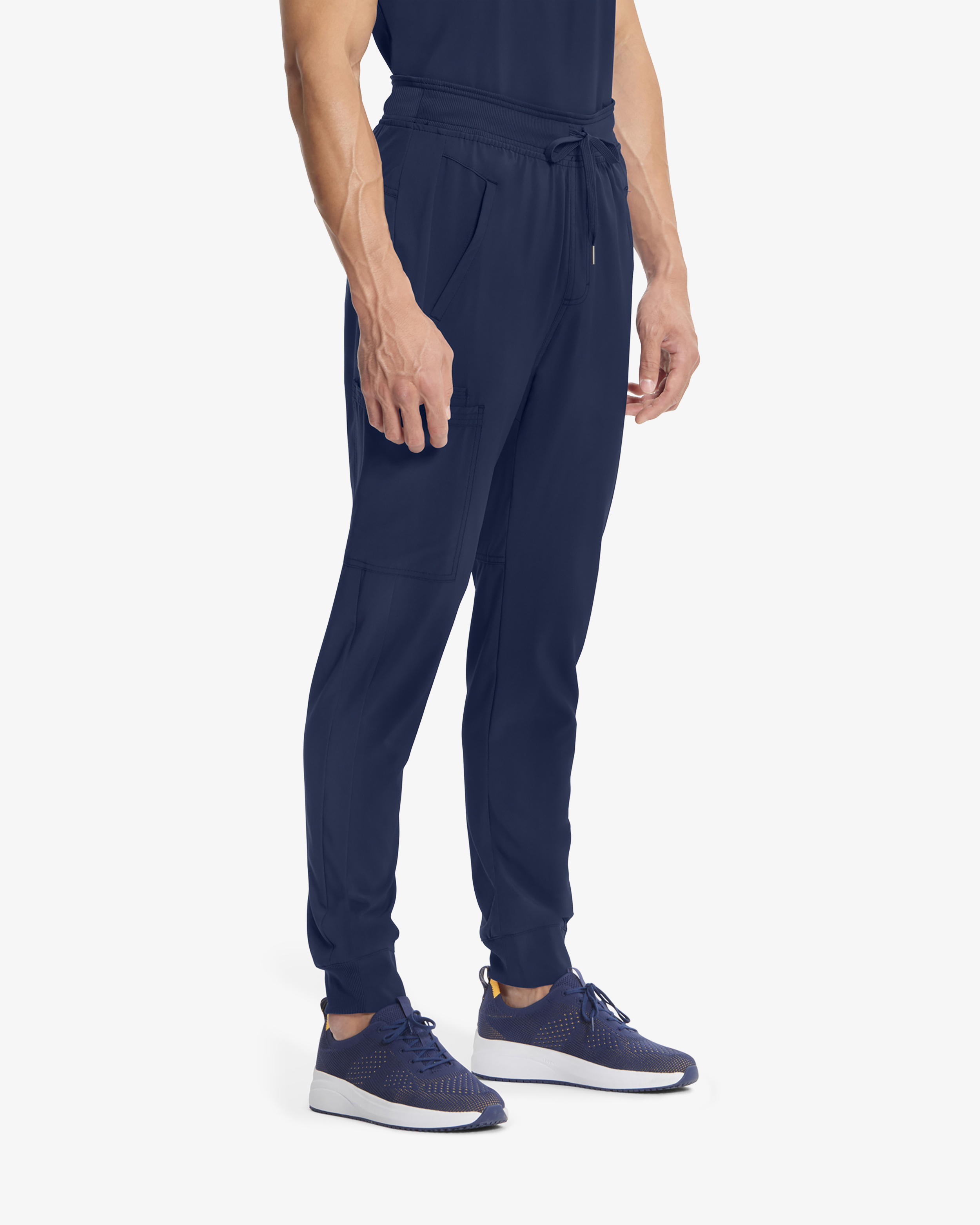 Joggerbukse for menn med moderne passform og medium midje, designet for å gi komfort og bevegelsesfrihet for helsearbeidere under lange skift. Fem praktiske lommer, hvorav tre med glidelås og en smart cargo-lomme med mobillomme, gjør det enkelt å organisere arbeidsredskapene. Buksen har ribbestrikkede mansjetter, fukttransporterende PROTX2-teknologi, effektiv luktkontroll og 4-veis stretch for full fleksibilitet.