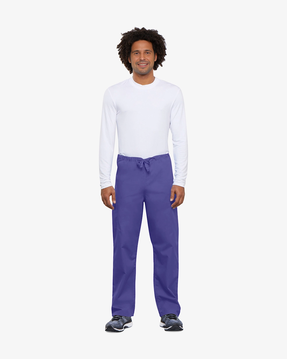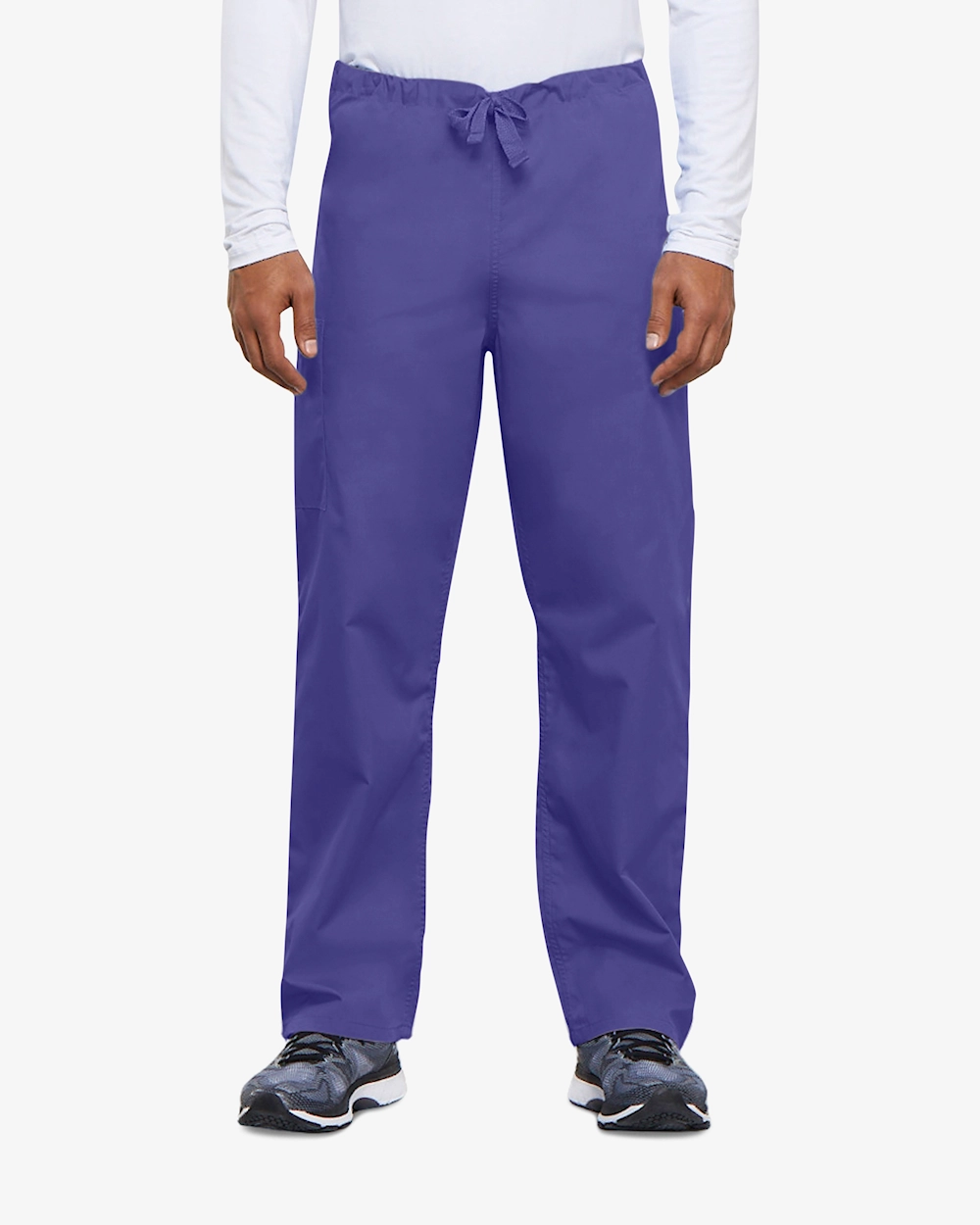 Unisex-arbeidsbuksen kombinerer funksjon og komfort for helsepersonell med høye krav til kvalitet. Den naturlige linningen har en justerbar snøring for perfekt passform og praktiske løsninger som baklomme og cargo-lomme med innvendig mobillomme. Smussavvisende stoff gjør arbeidet lettere under intense økter. Innvendig benlengde: 79 cm. Tradisjonell og stilig design.