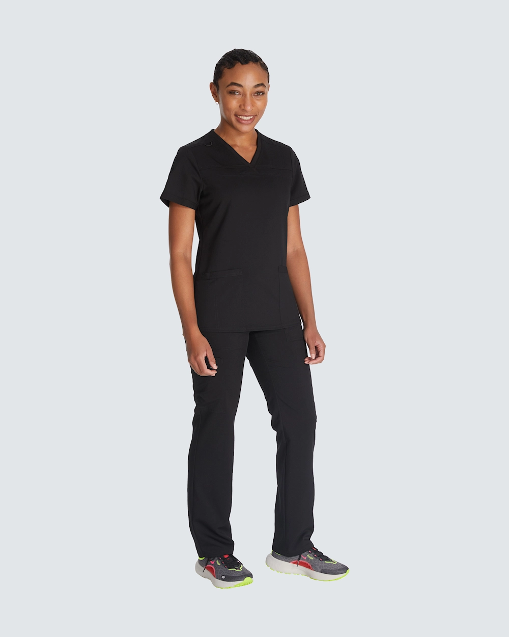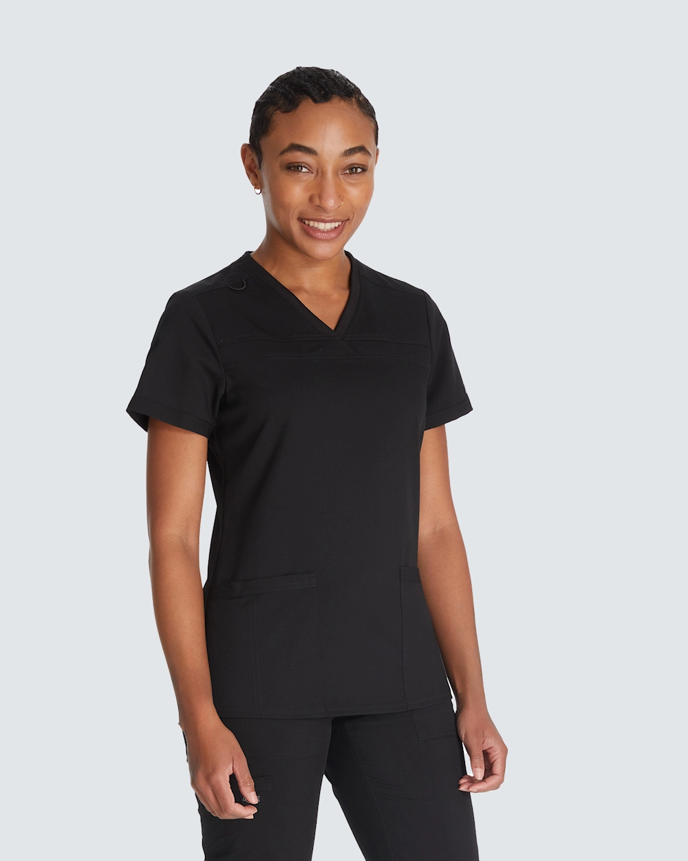 Opplev optimal komfort og stil med denne dametunikaen med ribbestrikket myk V-hals. De ribbestrikkede sidepanelene gir ekstra komfort og bedre bevegelsesfrihet, noe som gjør den perfekt for lange arbeidsdager. Tunikaen har en lett innsvingt passform og to påsydde lommer for oppbevaring av viktige gjenstander. Perfekt for pleiepersonell som verdsetter stil og komfort.