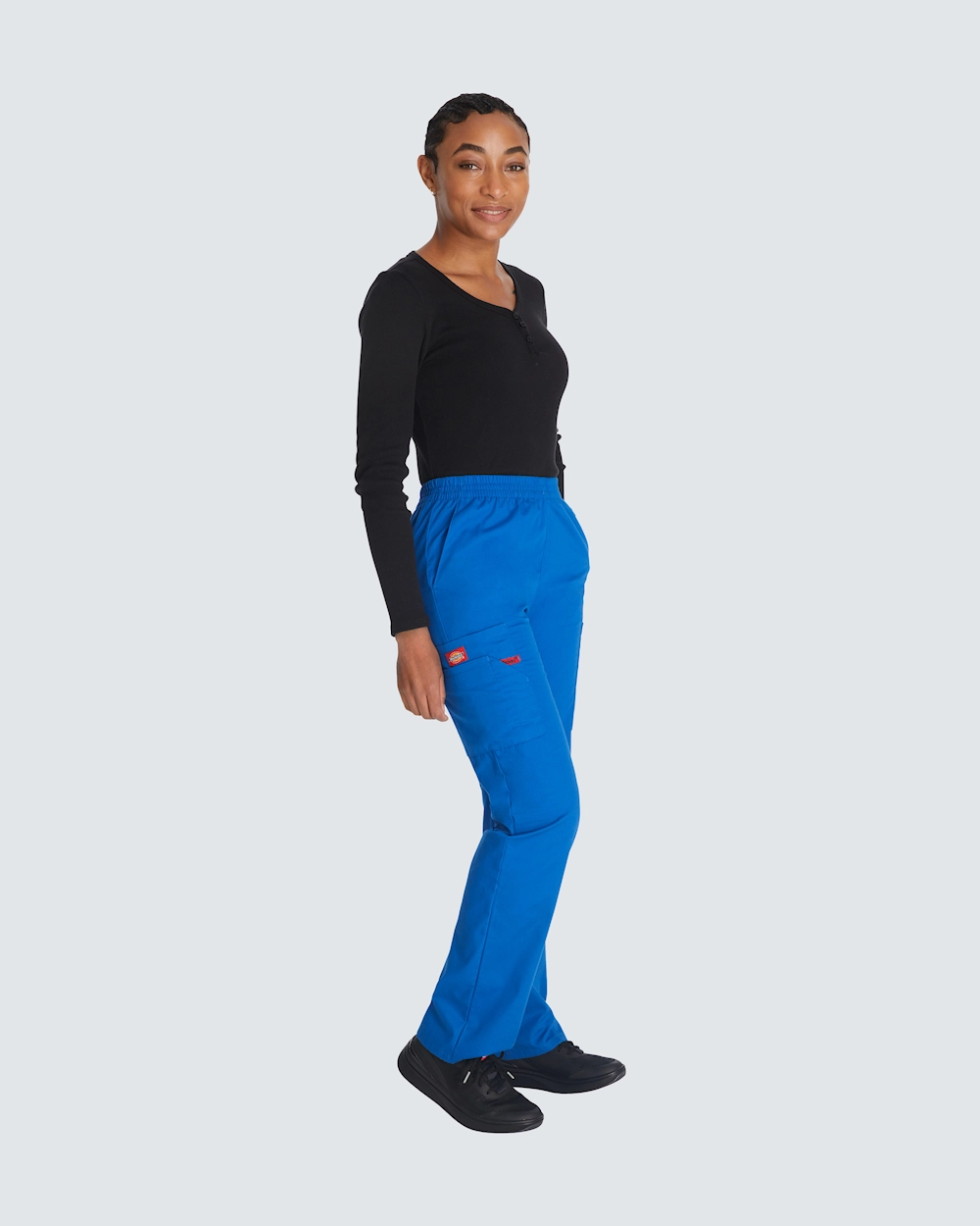En moderne arbeidsbukse med smal passform og normal midje. Pull-on-stil med elastisk midje for komfort og fleksibilitet. Buksen har praktiske detaljer som nøkkelhull og en elastisk, skjult innerlomme.
