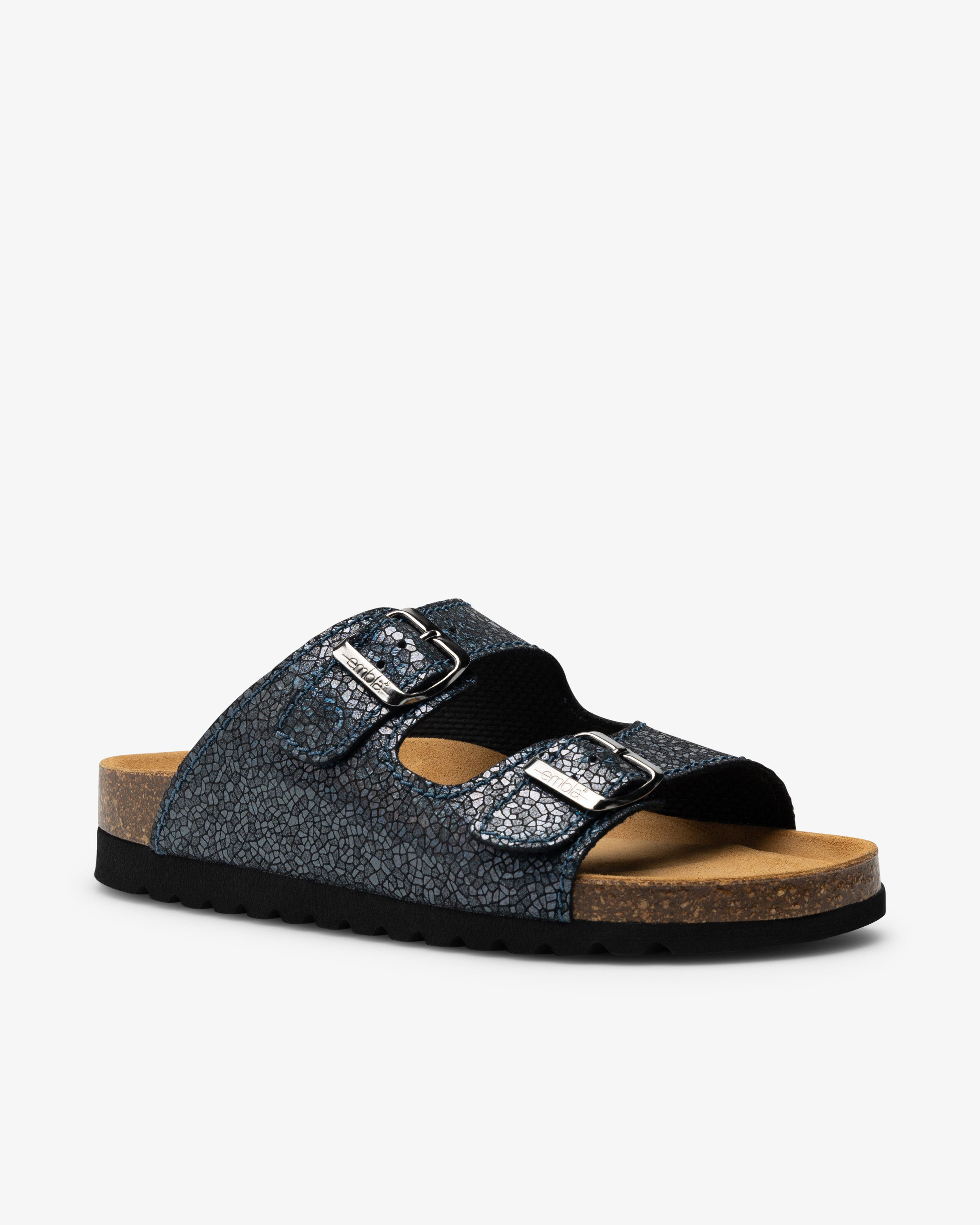 Komfortabel og fottilpasset damesandal i skinn med mykt fôr i Cambrelle. Anatomisk utformet fotseng i kork med skinnbekledning. Ekstra fotbuestøtte og en formet hæl for optimal komfort. Denne sandalen gir behagelig demping og har en EVA-yttersåle som gir godt grep mot underlaget. To justerbare remmer med spenne gjør det mulig å tilpasse passformen. Velegnet for personer med fotproblemer som hælspore, plattfot, ømme tåballer og nedsunken forfotsbue.
