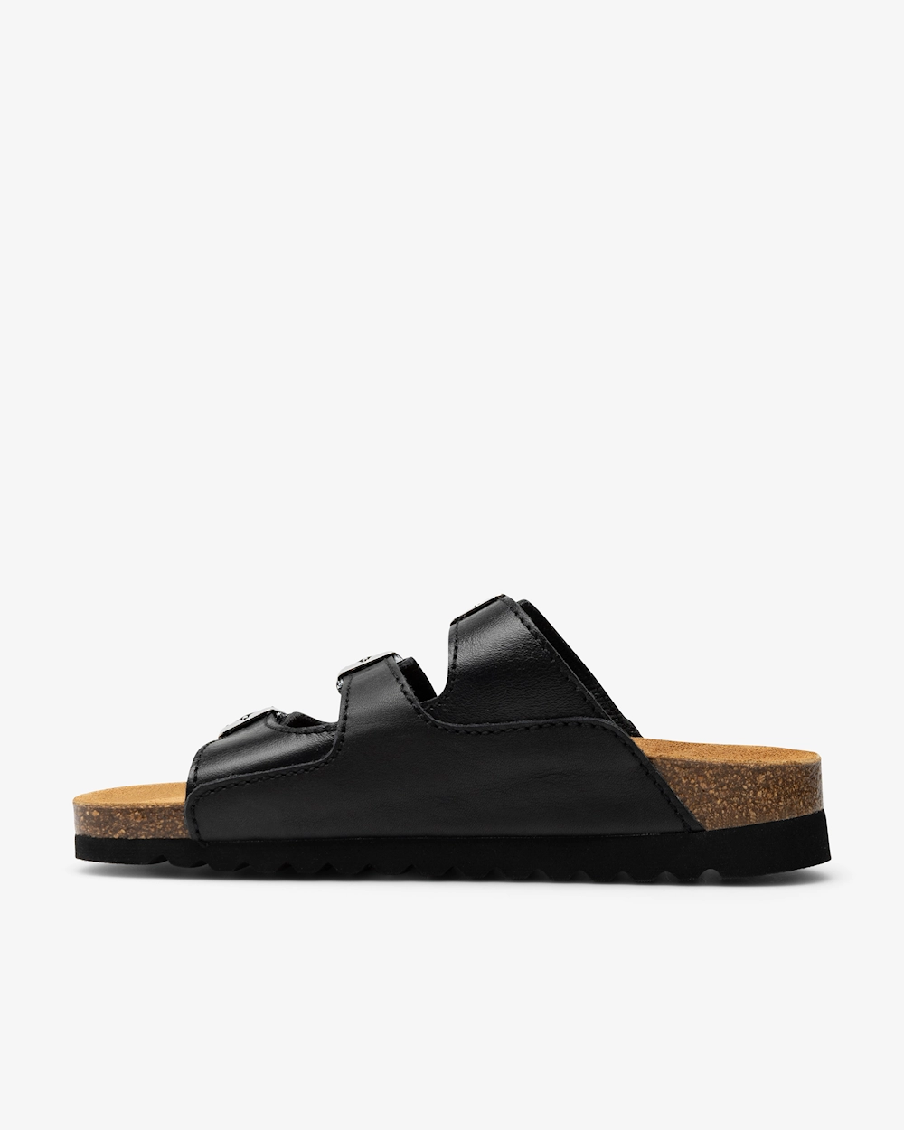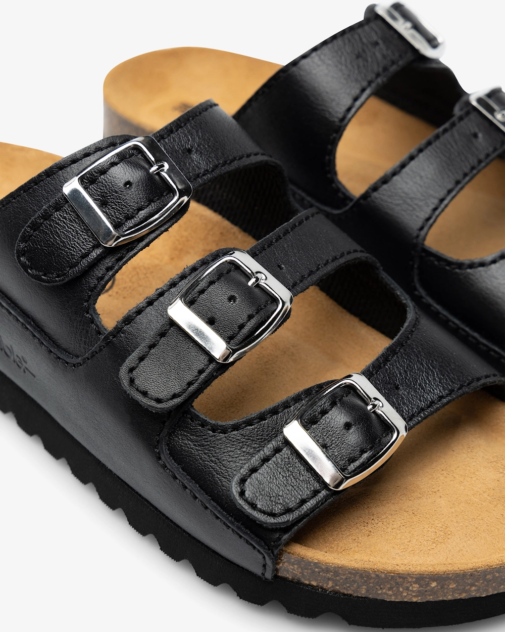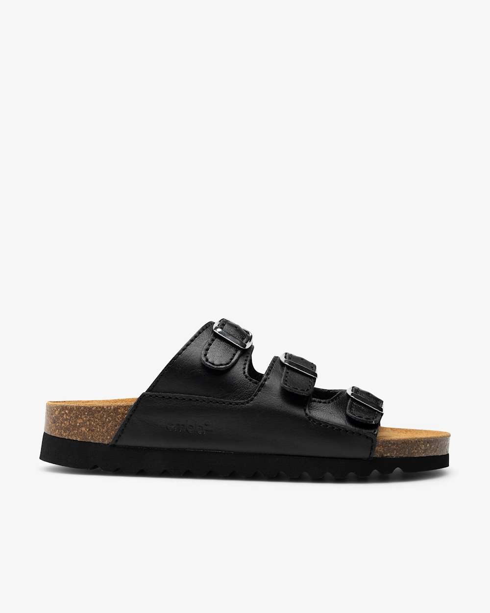 Damesandal i skinn med tre justerbare remmer med spenne. Anatomisk utformet fotseng i kork som gir støtte til fotbuen. Fotsengen er skinnkledd og har en myk sviktsåle for optimal komfort. Sandalen har fôr i Cambrelle-stoff og en yttersåle som griper godt om underlaget. Egnet for både innendørs og utendørs bruk.