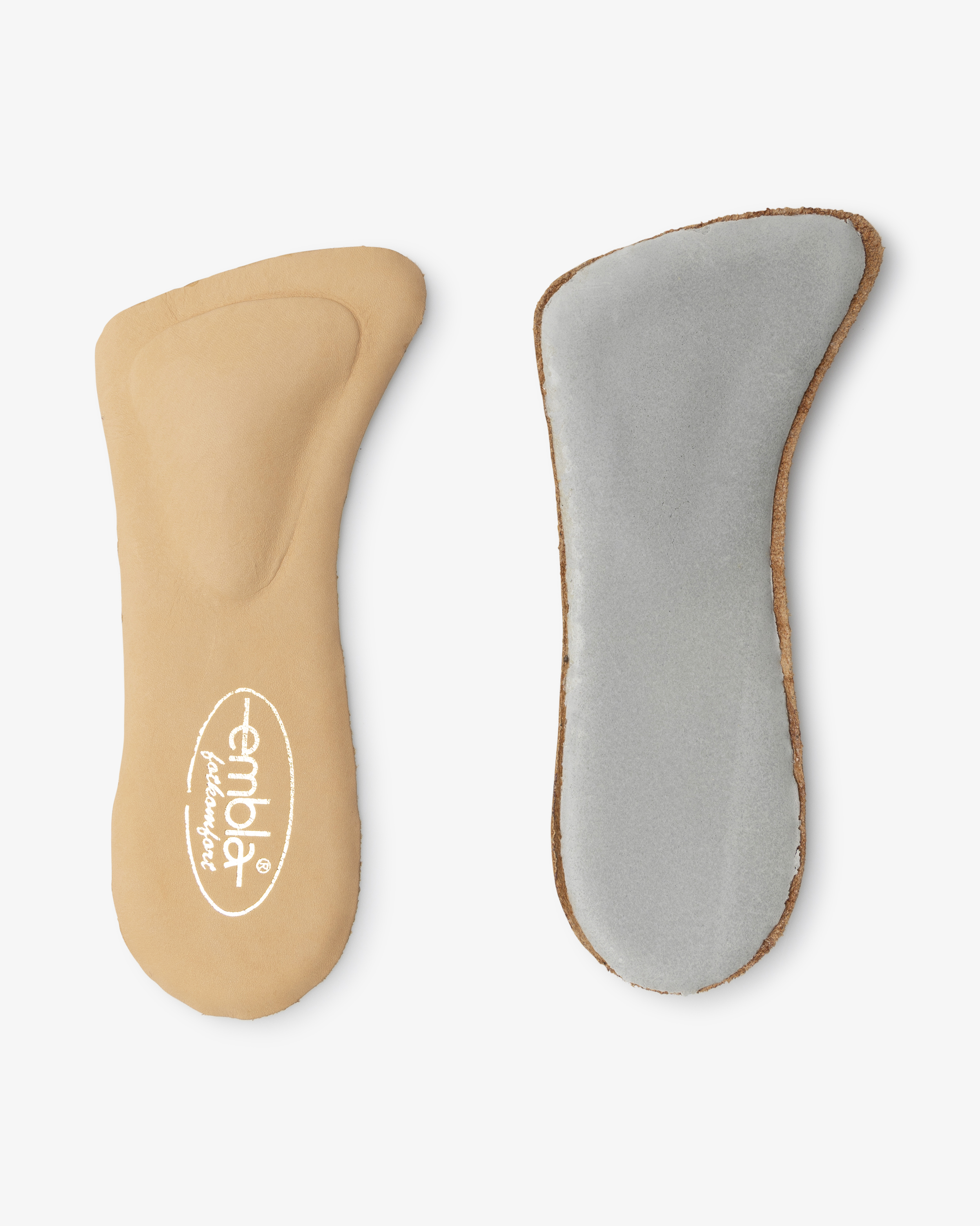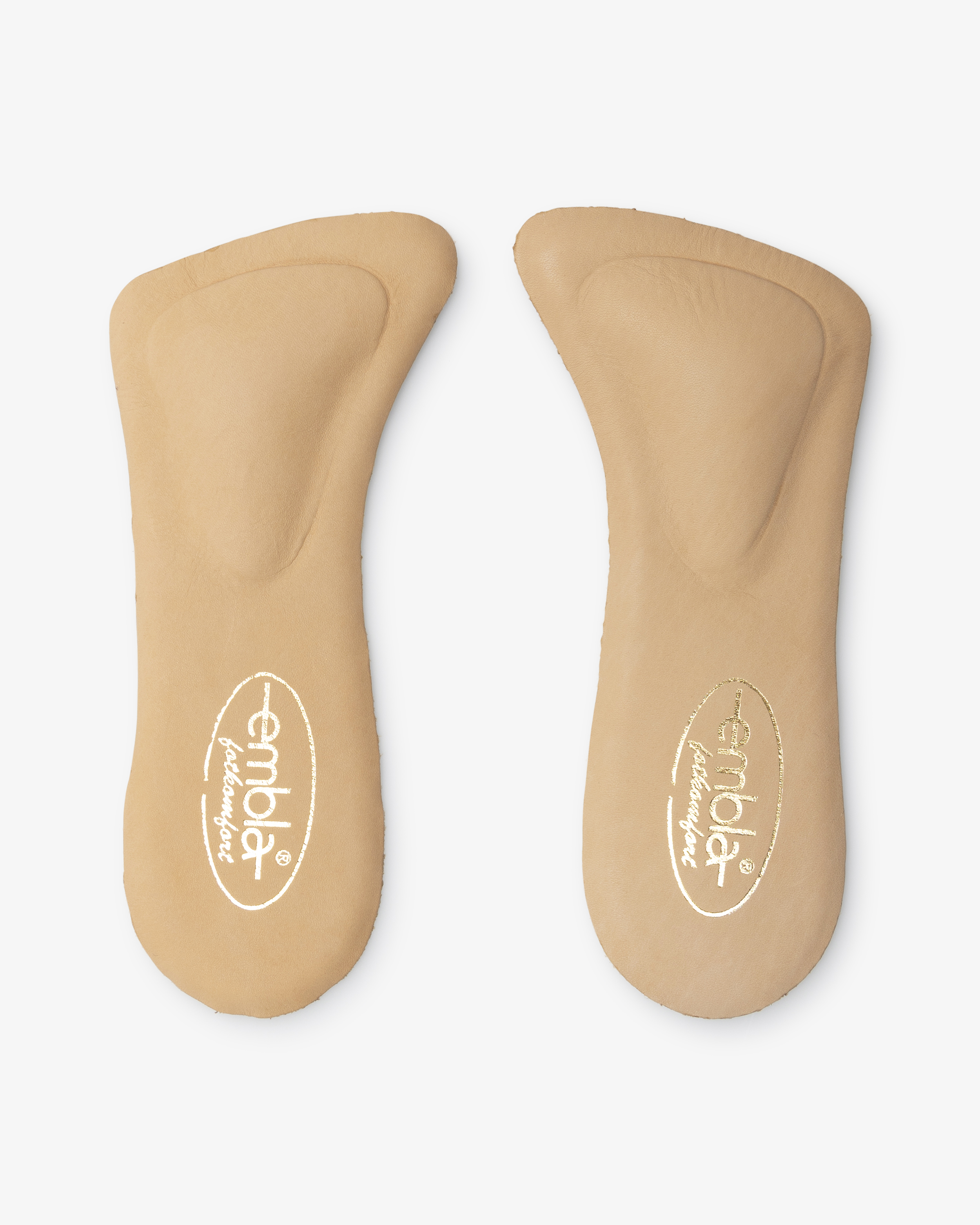 Myke forfotsstøtter med lærovertrukket overflate som føles behagelig mot huden selv under lange arbeidsdager. Gir effektiv støtte og løfter nedtrykte, trette fotballer for økt komfort ved hvert skritt. Designet for helsepersonell som prioriterer funksjon, kvalitet og individuell tilpasning i arbeidsmiljøet. Passer til de fleste skomodeller.