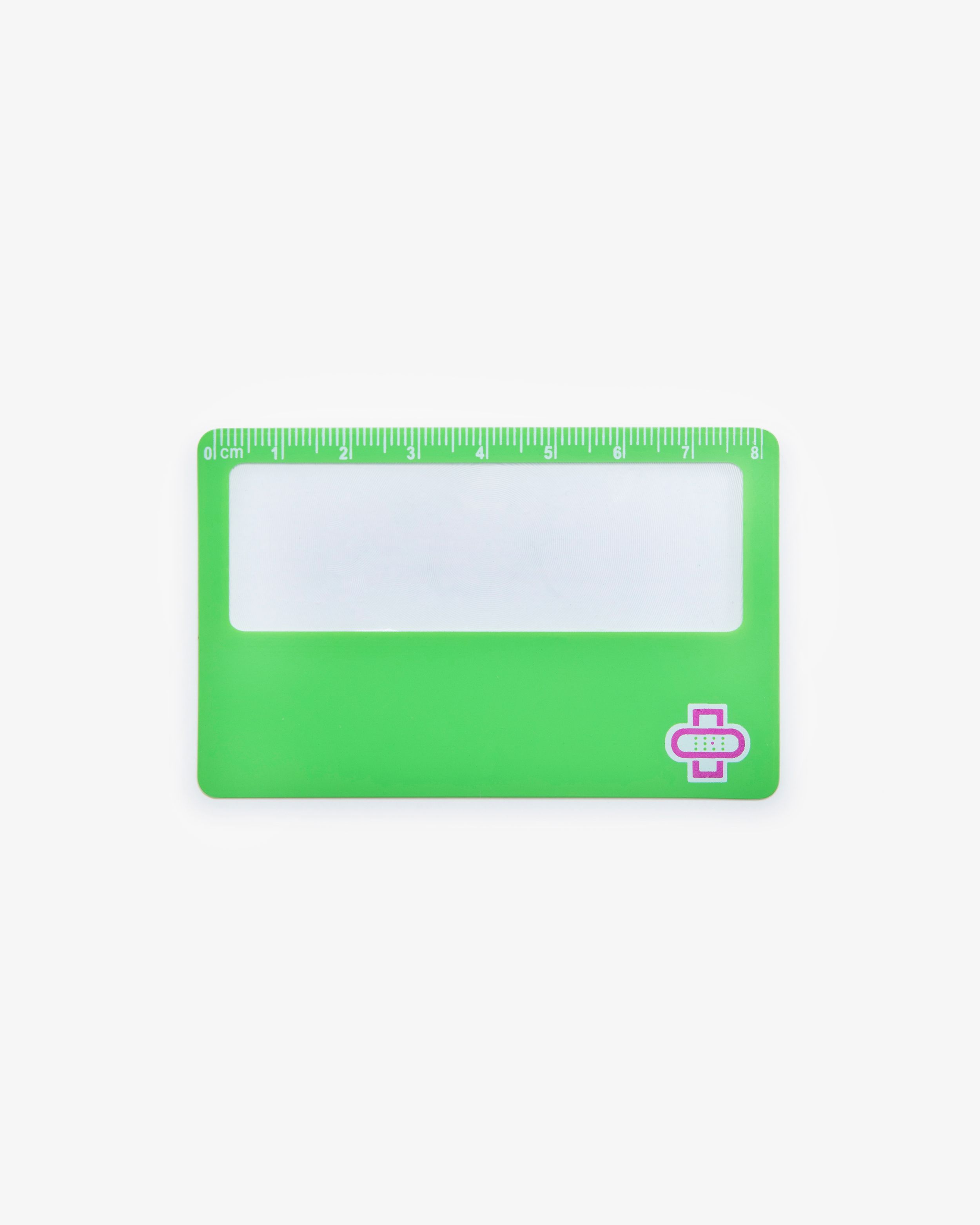 Et forstørrelsesglass i kredittkortstørrelse. Ideell for eksempel til å lese liten skrift på medisin emballasje. Kortet kan også fungere som en linjal (8 cm). Ideell å ha i brystlommen, jakkelommen, bukselommen, vesken eller annen plass som har dimensjonene 85 x 55 mm eller større.