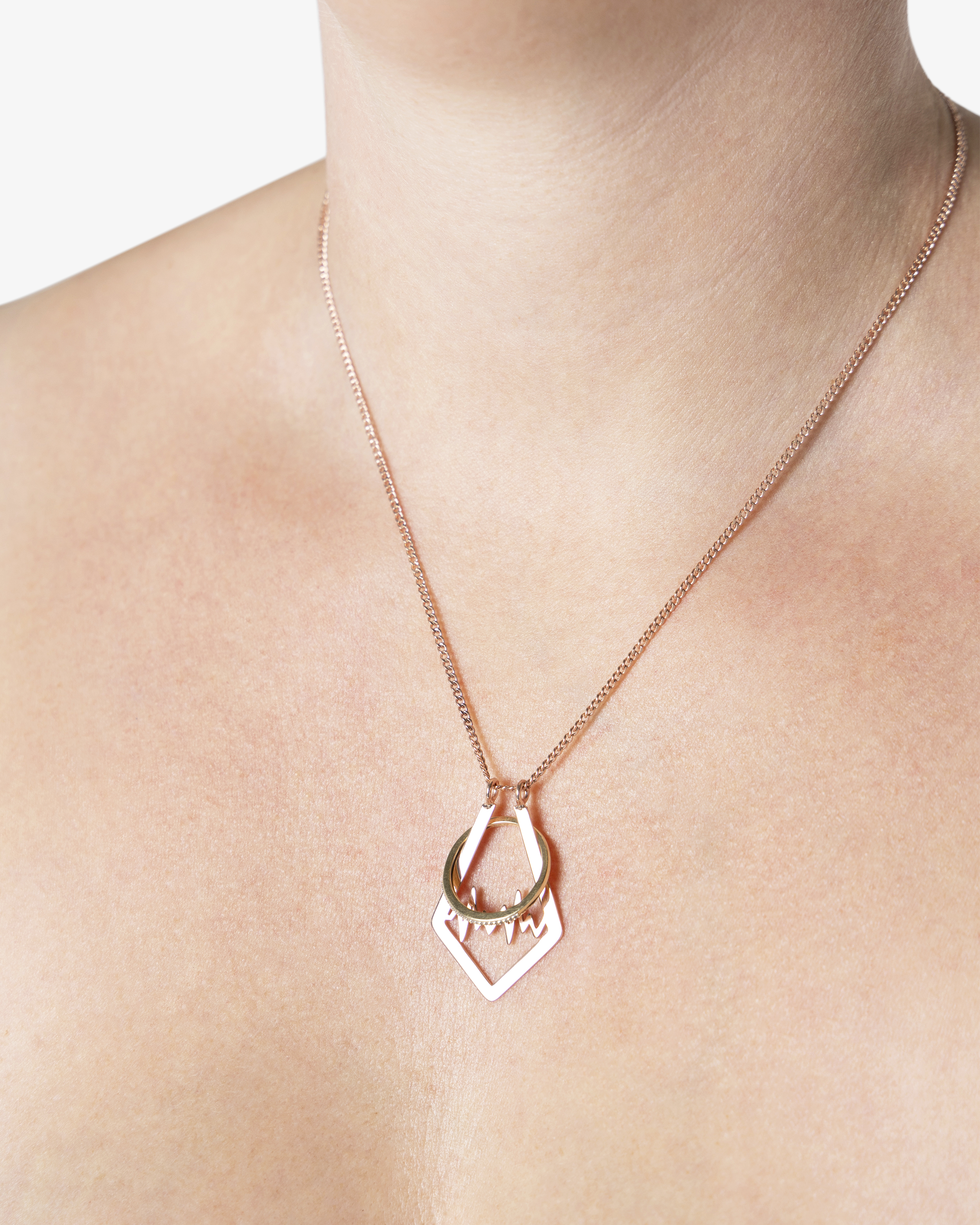 Halskjede i rosé med anheng, hvor du enkelt og trygt kan oppbevare ringen din når du ikke kan eller får lov til å ha den på fingeren. Halskjedet er allergivennlig og laget i 925 sølv belagt med 18K rosa gull