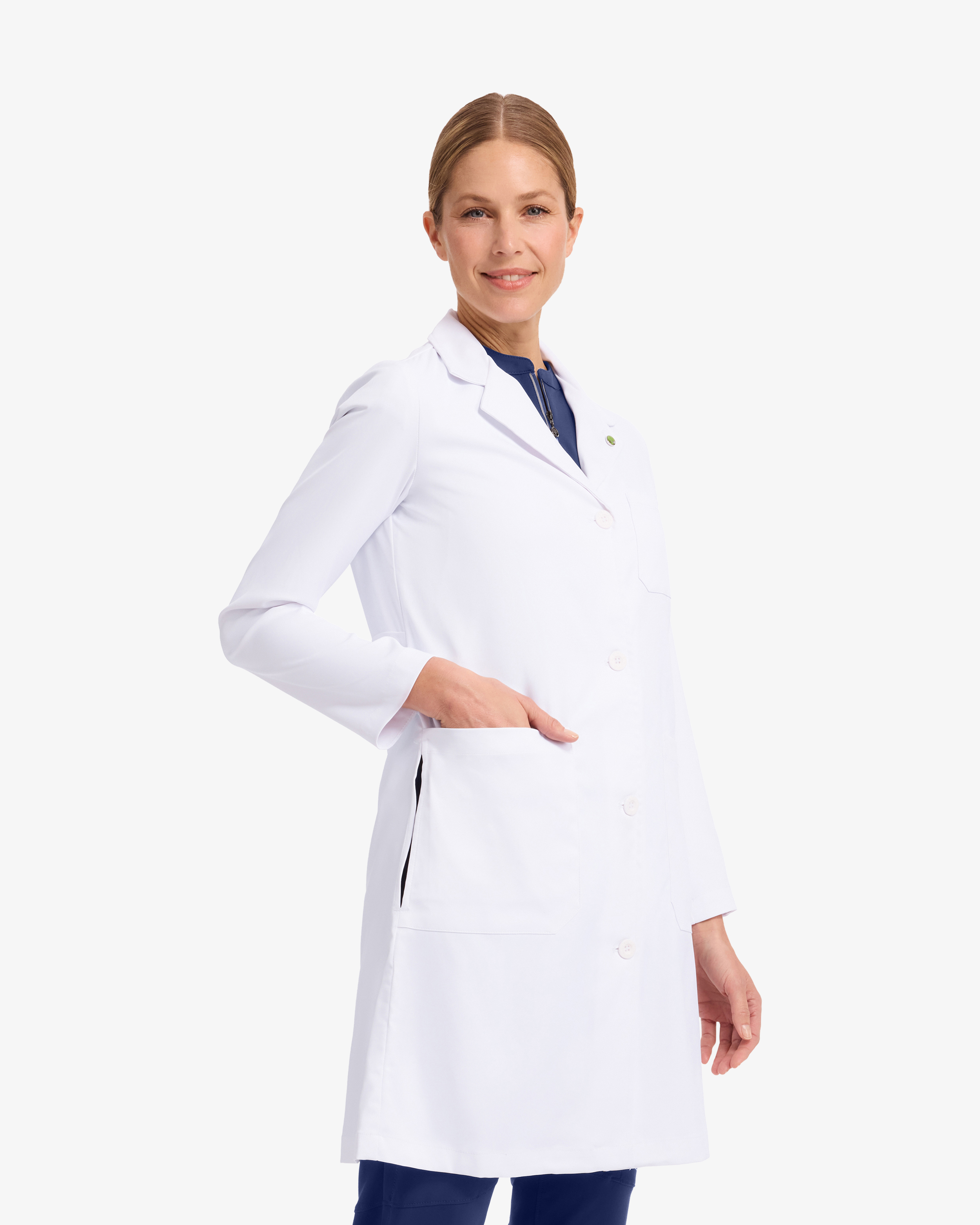 Denne heldekkende legefrakken kombinerer moderne design med funksjonalitet. Modellen er laget av et smidig stoff med toveis stretch og gir optimal bevegelsesfrihet og komfort under lange vakter. Den avslappede passformen gjør at frakken sitter komfortabelt selv over flere lag. Flere praktiske lommer gjør det enkelt å oppbevare verktøy og personlige eiendeler.
