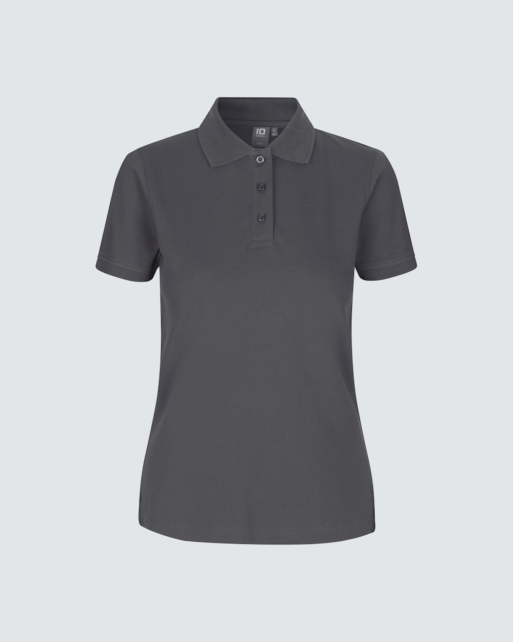 Denne lett innsvingede pikégenseren for damer har stretchmateriale og splitt på sidene. Stilrene ton-i-ton knapper foran midt.