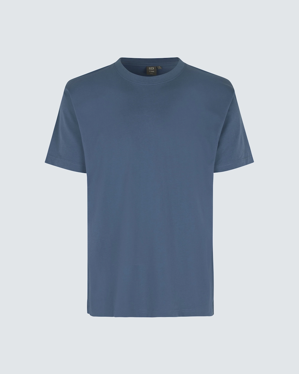 Klassisk t-skjorte med rund hals t-skjorte med firelags ribbestrikk i halsen beholder formen vaske efter vask.