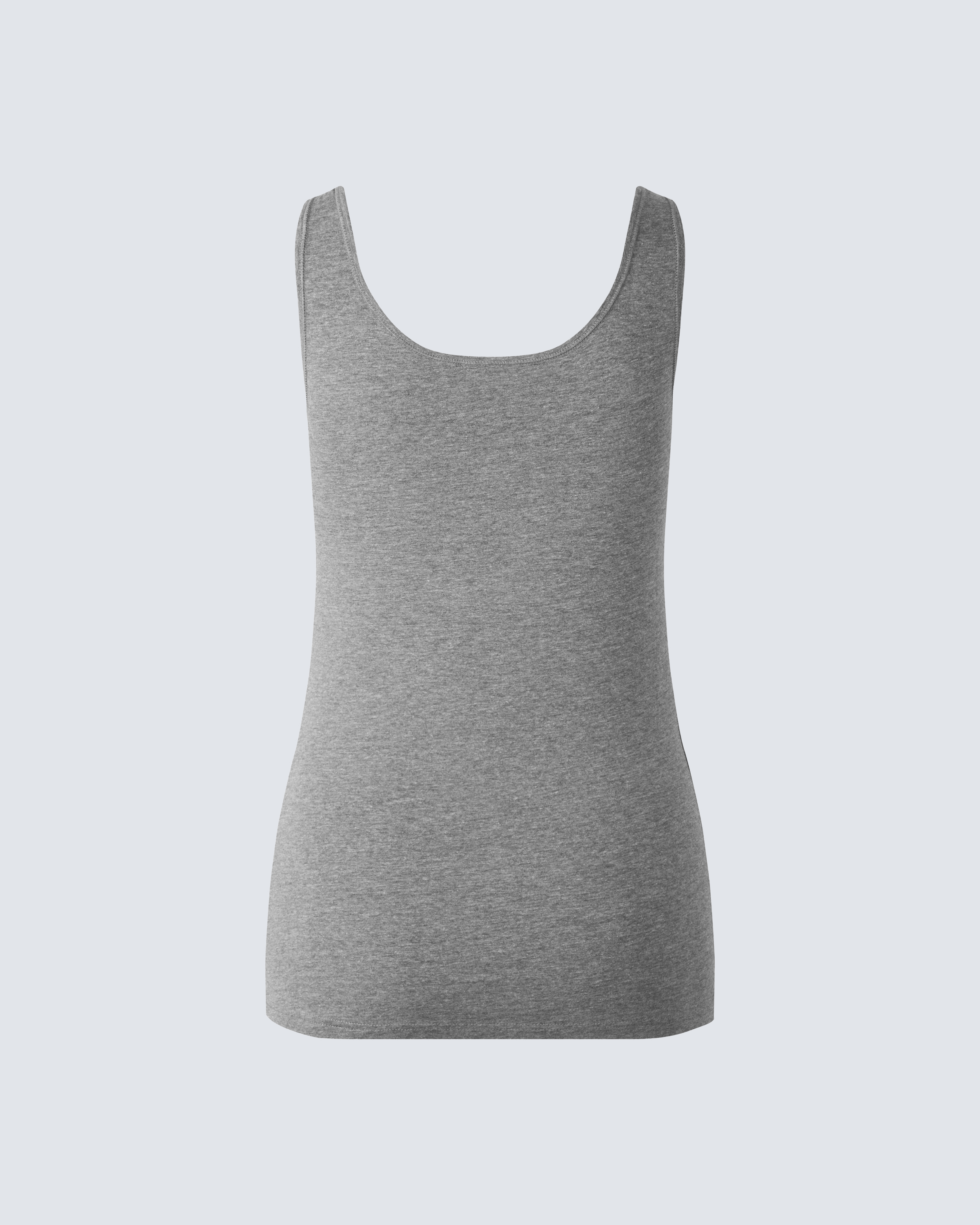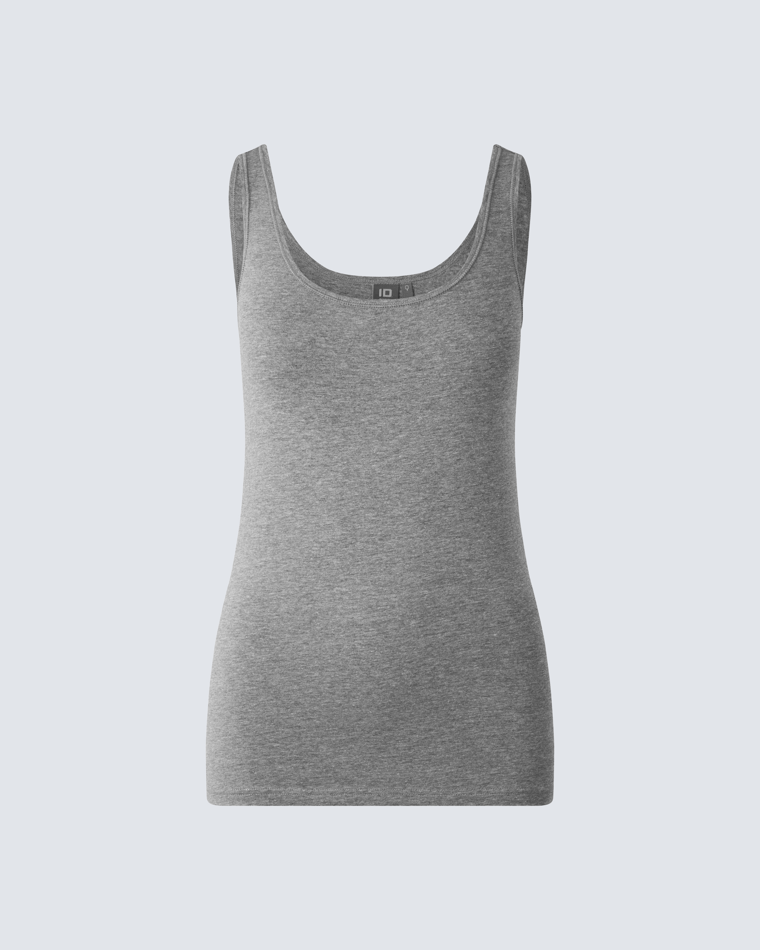 Tanktop i gråmelert bomullsblanding med stretch, utviklet for å gi deg maksimal komfort og bevegelsesfrihet. Den smale ribbestrikken rundt hals og ermehull gjør toppen slitesterk og gir en moderne finish. Den kroppsnære modellen holder seg pen vask etter vask – perfekt under jobbuniformen.