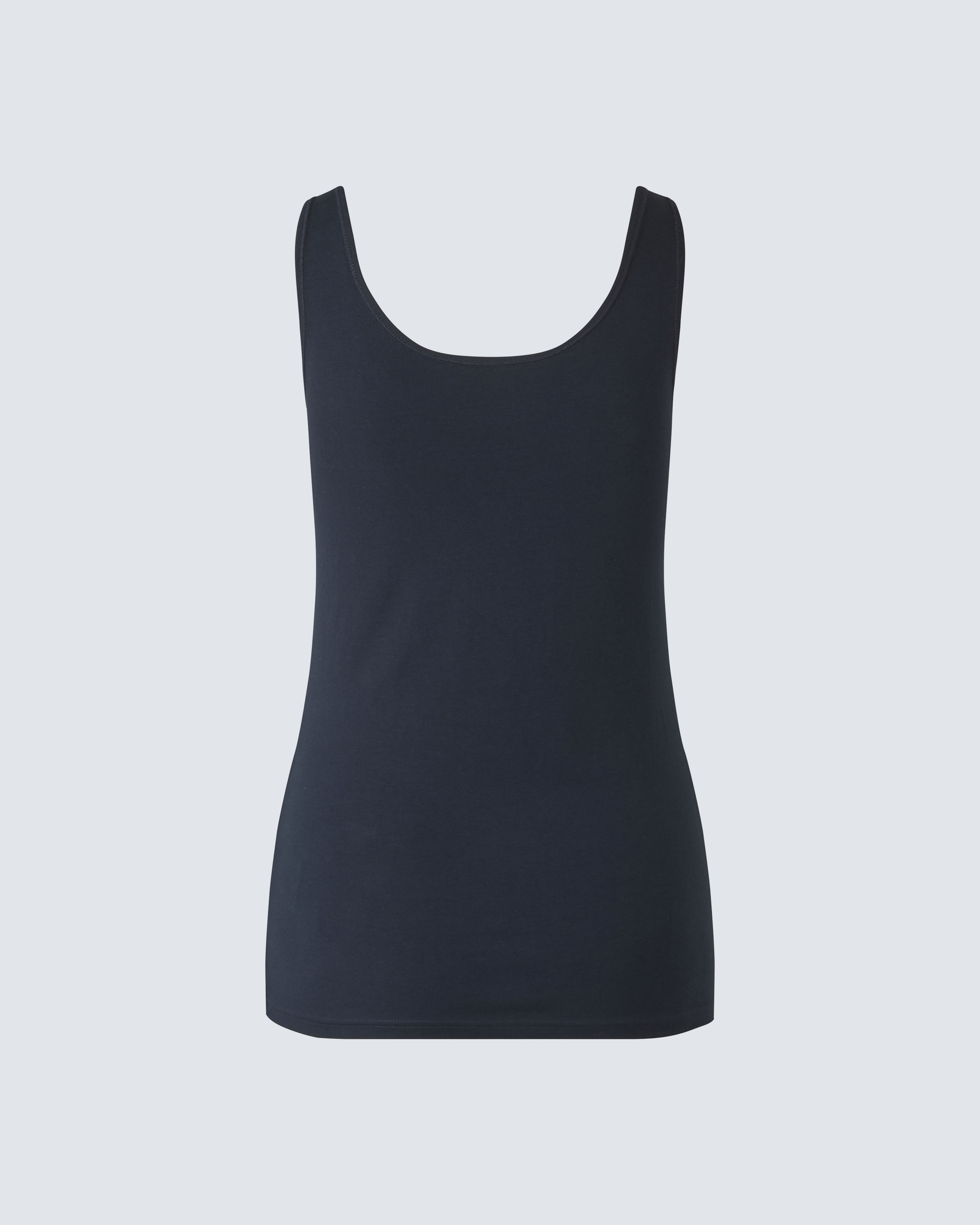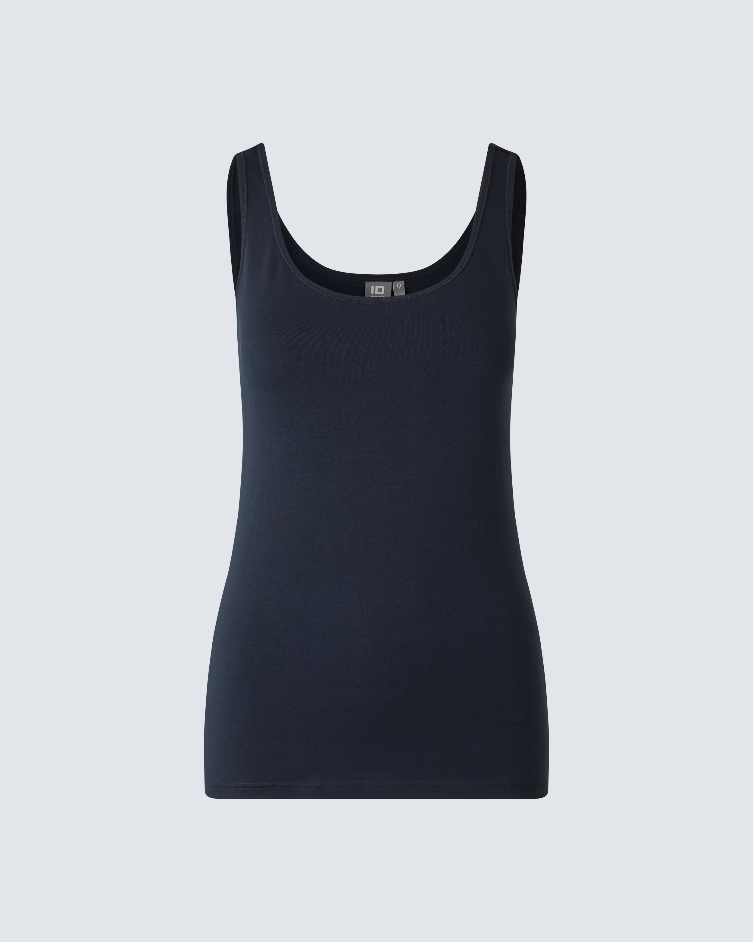 Marineblå tanktop i myk bomullsblanding med stretch for optimal bevegelighet og en tettsittende, komfortabel passform hele dagen. Den smale ribbekanten rundt hals og ermehull gir en moderne stil og ekstra slitestyrke. Den figurnære modellen holder fasongen selv etter vask på 40 grader – perfekt under arbeidsklær for en profesjonell look.