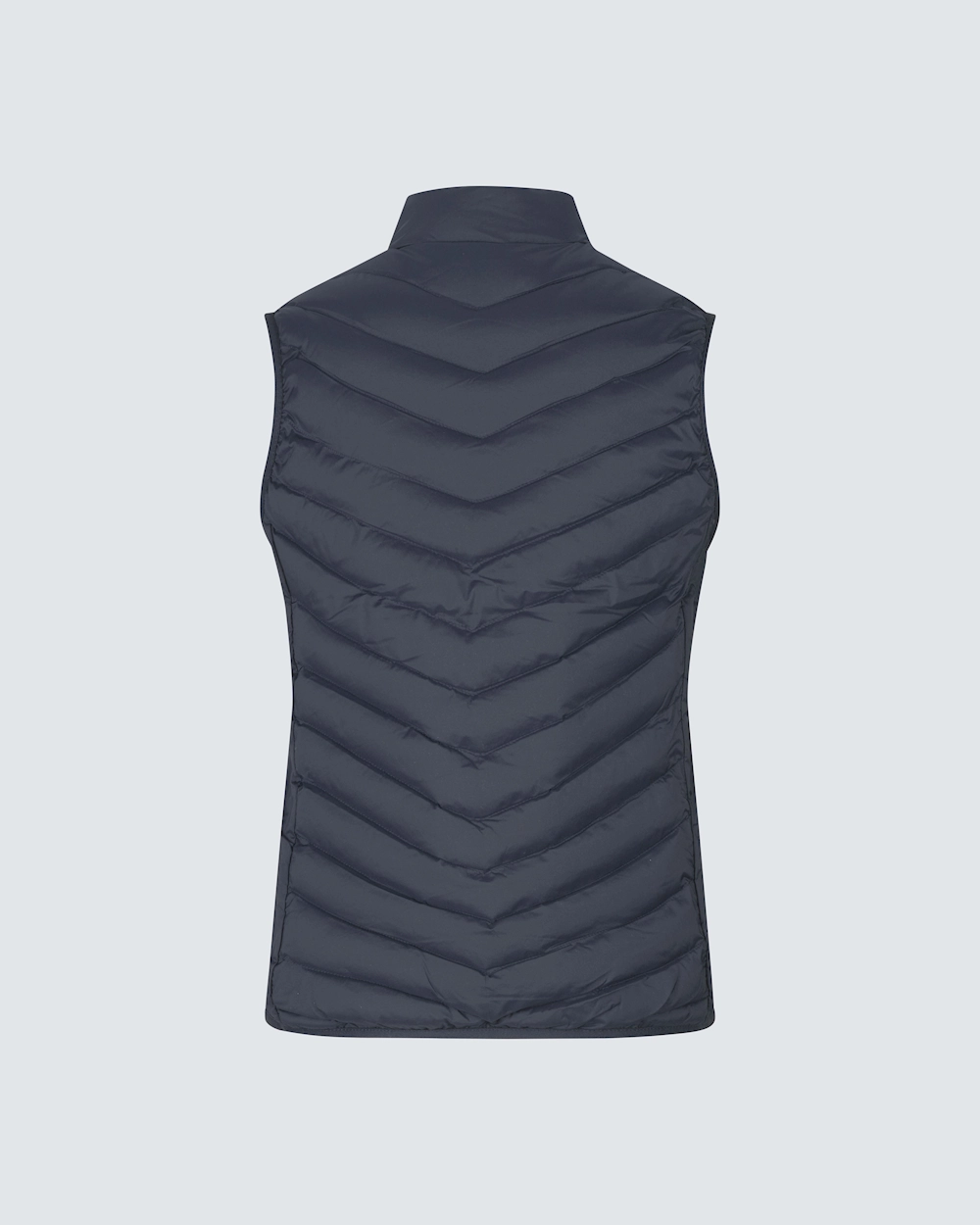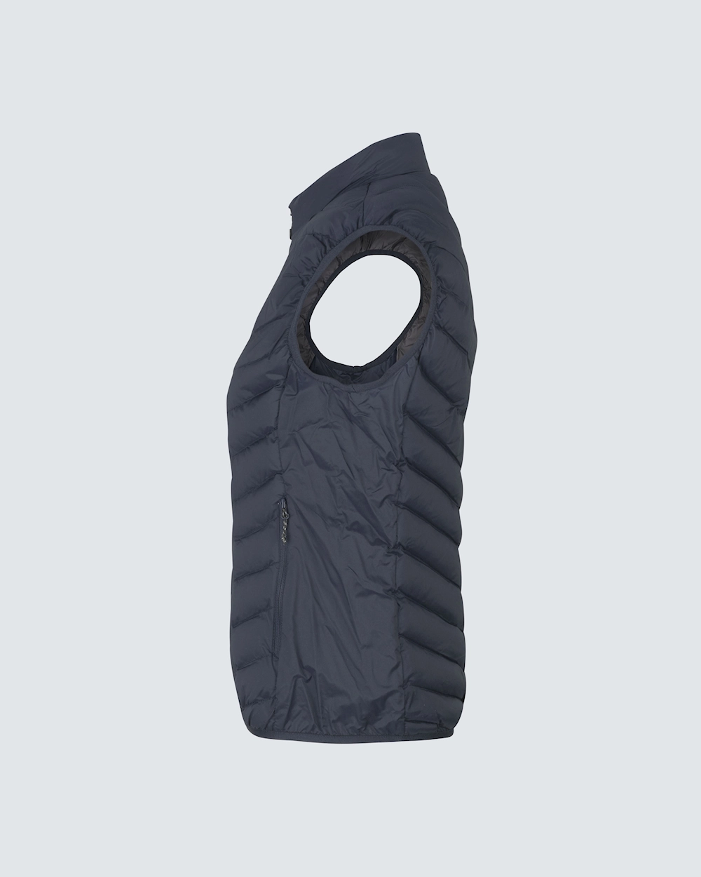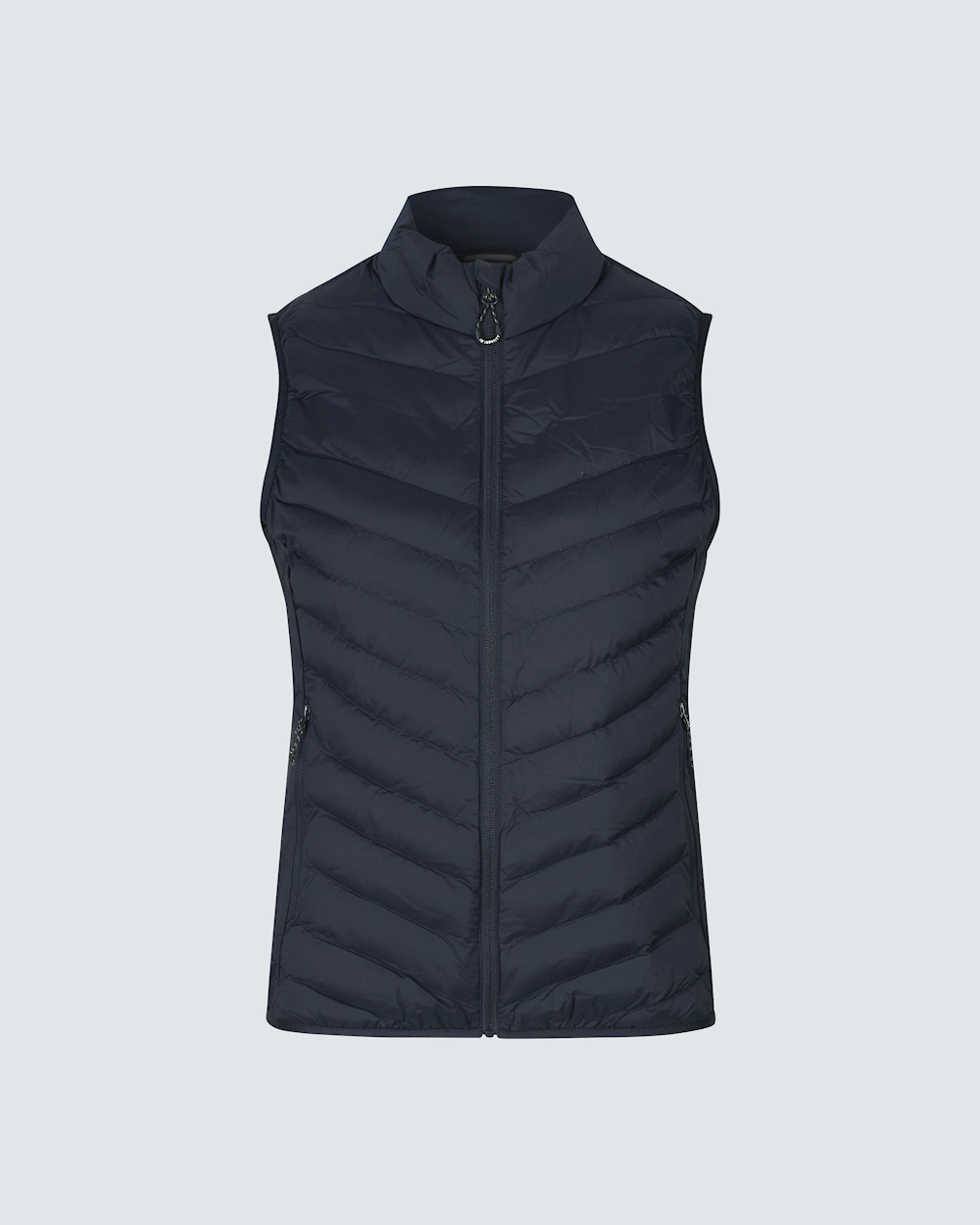 Den vatterte vesten er perfekt for vår eller høst, med smale diagonale kanaler som skaper en sporty look. Stretchpaneler i sidene gir optimal komfort og bevegelsesfrihet hele dagen. Sidelommer med glidelås gir sikker oppbevaring.