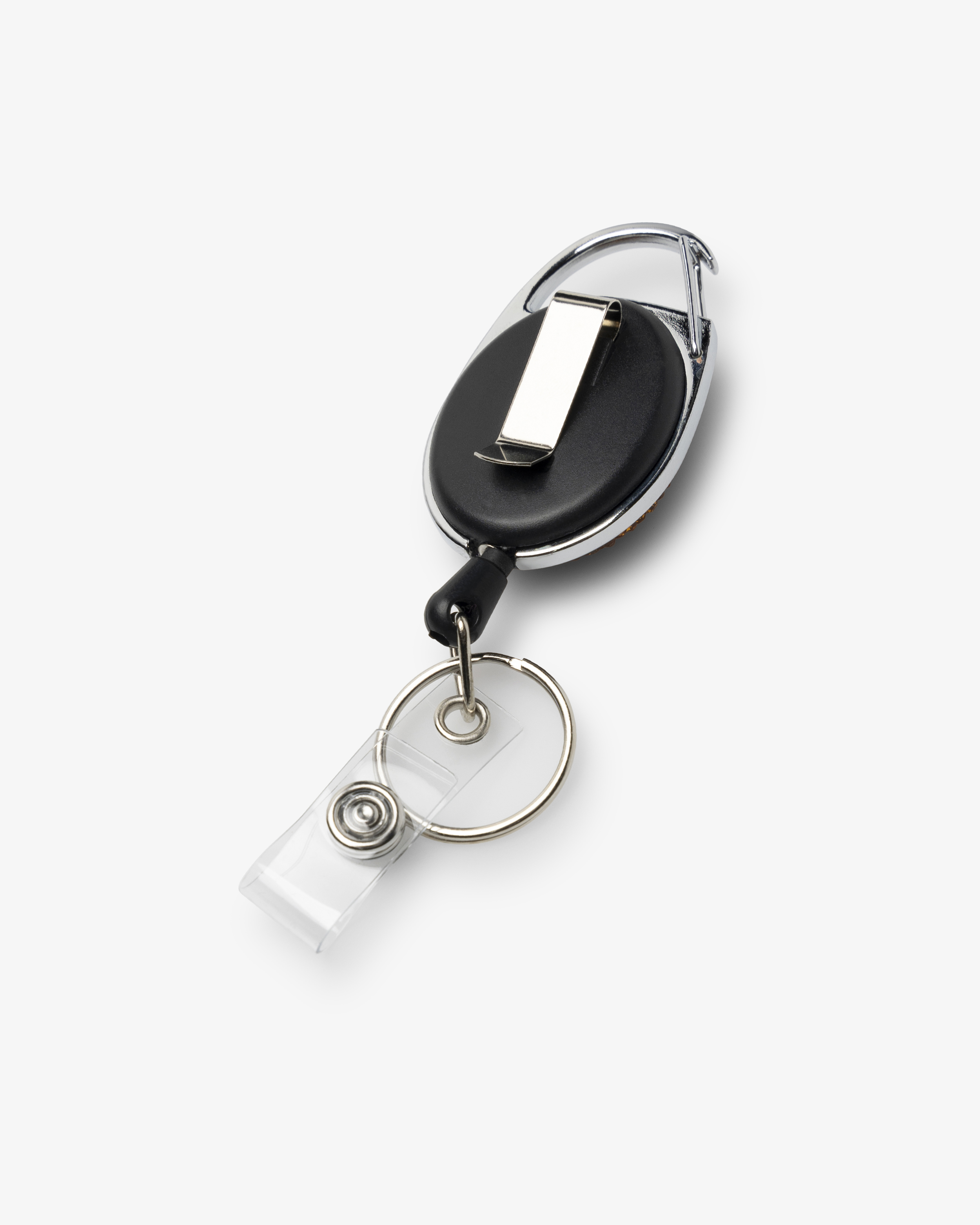 Med en kortholder har du alltid nøkler og ID-kort nære til hånds. Du kan enten feste denne jojo-holderen til arbeidsbuksene dine med karabinhaken, eller til kittelens lomme med et klips på baksiden. Jojo-holderen har plass til både nøkler og ID kortet ettersom det har både nøkkelring og plastreim.