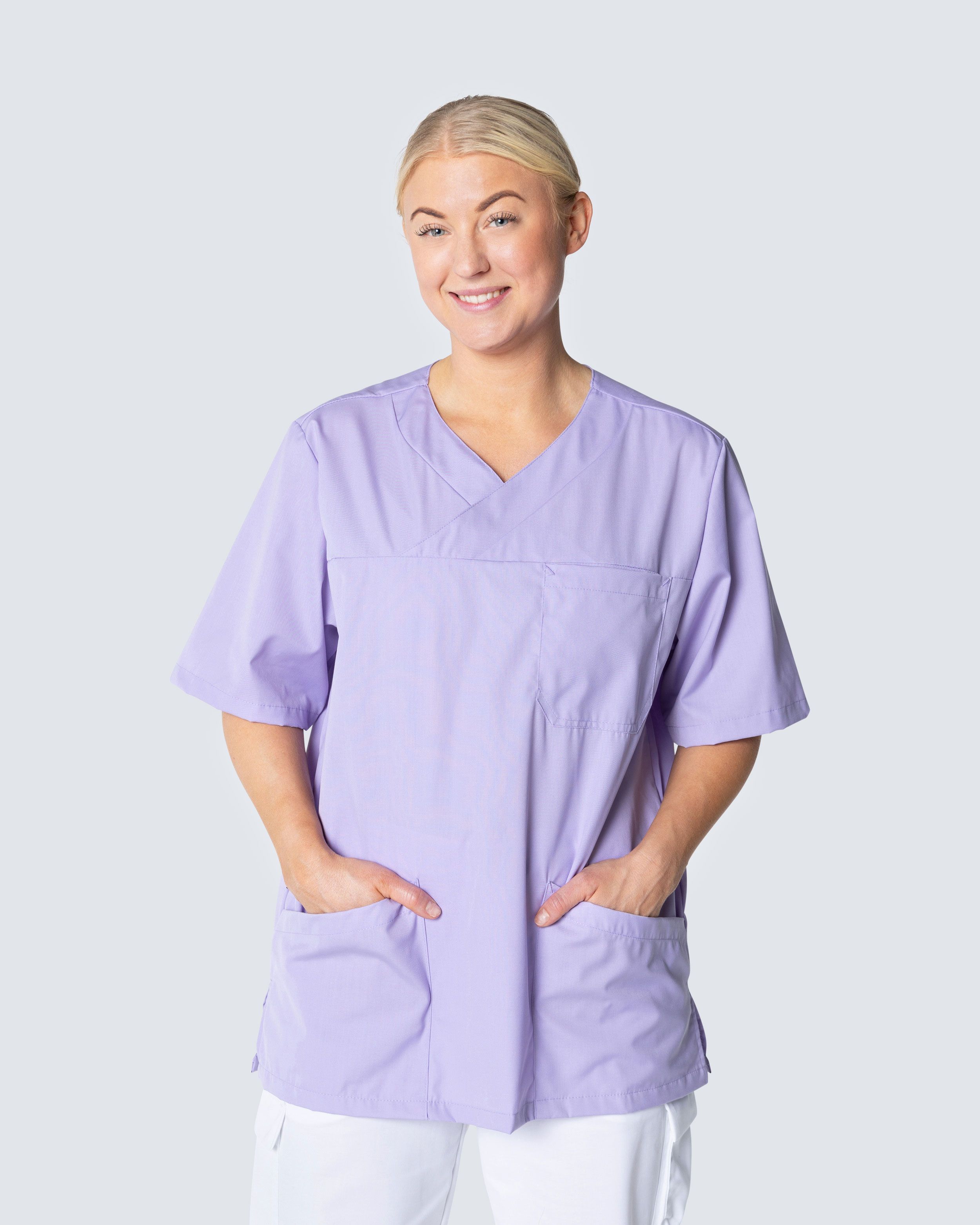 Behagelig og romslig kittel i polyester/bomullsblanding. Med praktiske og romslige lommer får du enkelt plass med det du trenger ha med deg under en arbeidsøkt. De to lommene foran er på skrå hvilket blir fine detaljer på kittelen.