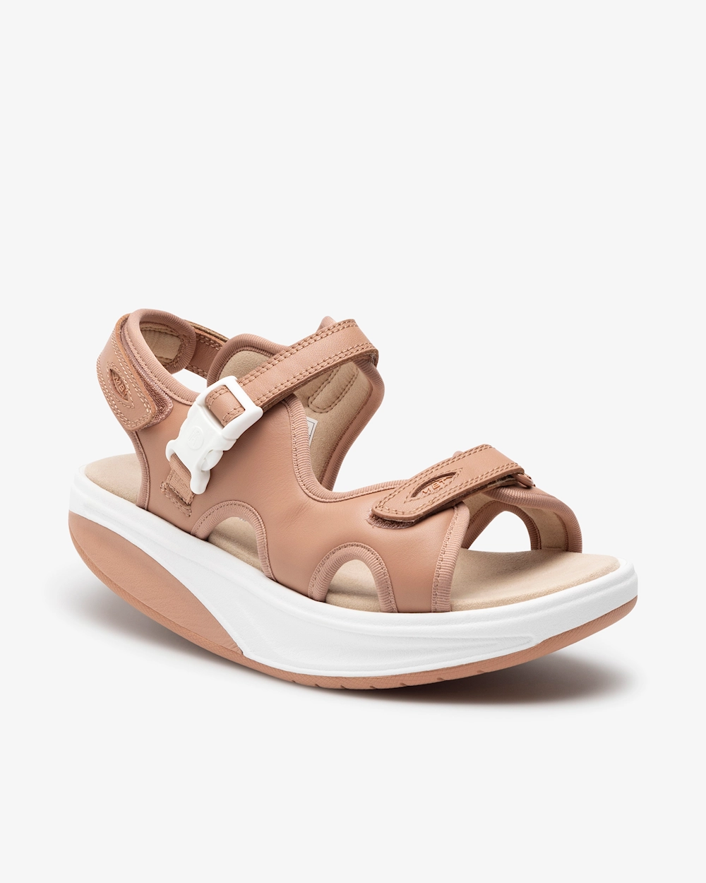 MBT KISUMU er mye brukt i ulike serviceyrker, der man ferdes dagen lang på hardt statisk underlag. Sandalen aktiverer muskulatur, forbedrer kroppsholdning og avlaster rygg, knær og ledd. Sandalen er romslig og passer de fleste føtter med sin brede fotseng og tre justerbare stropper.