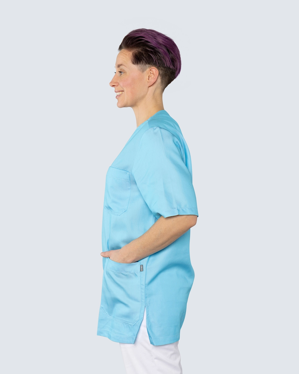 Nybo Kittel Comfort Unisex tilbyr både funksjon og komfort for helsepersonell som setter pris på et personlig uttrykk på jobb. Den justerbare ryggen og spilittene i sidene gir god bevegelsesfrihet. Praktiske lommer inkluderer en pennelomme i brystlommen og en lomme for nøkkelbånd og mobiltelefon i lommen på hoften. Denne kittelen er laget av et mykt og lett stoff med tencel som regulerer temperaturen, minimerer svettelukt og garanterer høy pusteevne og komfort. Det tofargede garnet gir glans og holder på fargen, alt med lav miljøpåvirkning. Perfekt for lange arbeidsdager uten at det går på kompromiss med stilen.
