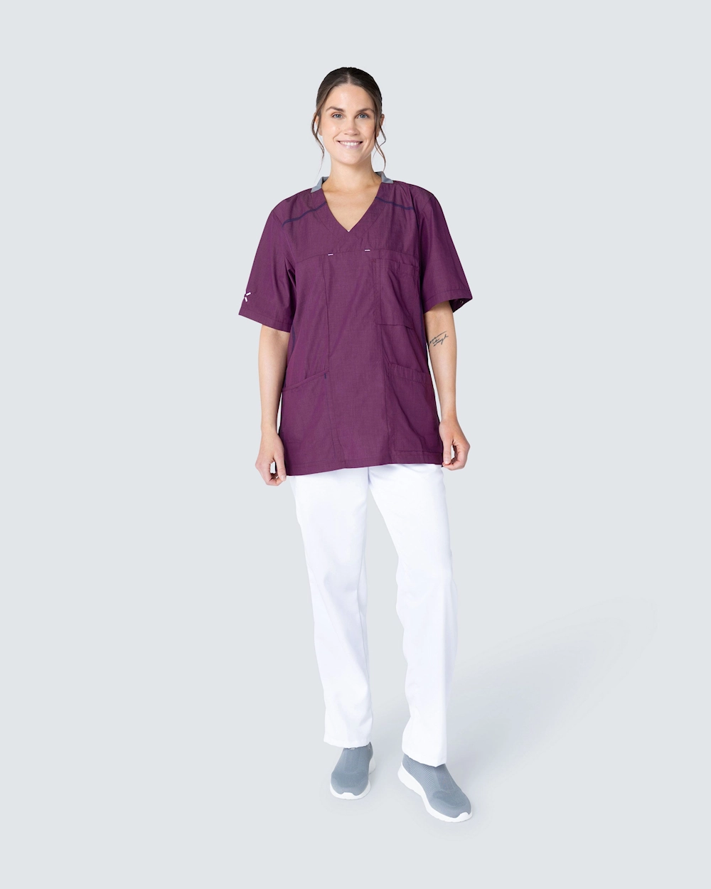 Om denne kolleksjonen Sporty er en kolleksjon av kitler, skjorter og vester inspirert av moderne løpeklær. Plaggene er designet med romslig passform og med sporty linjer i en kontrastfarge som gir et fint uttrykk. Plaggene i kolleksjonen Sporty er tilgjengelig i seks stilrene farger og kan vaskes på 75 °C.
