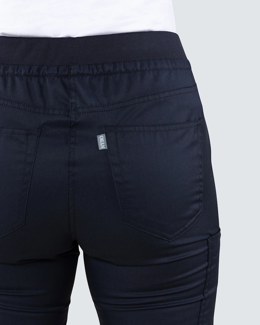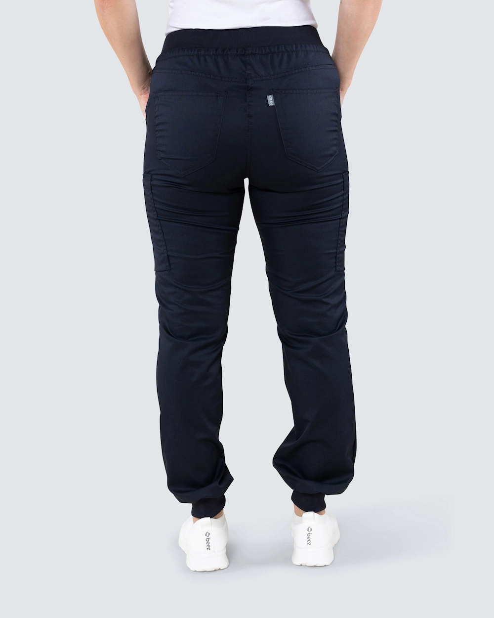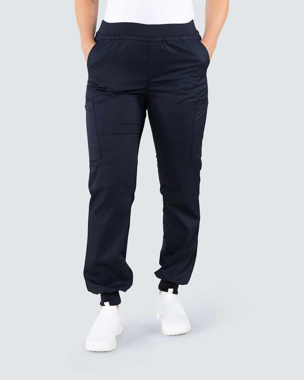 Behagelig og stretchy arbeidsbukse i pull-on modell med justerbar midjevidde takket være snøring i midjen. Disse buksene i unisexmodell har mansjetter i benenden, bredere lår- og hoftevidde og smalere benvidde. Flere lommer gjør det lettere å komme seg gjennom arbeidsdagen. Flotte bukser inspirert av street style perfekt egnet for pleiere som ønsker optimal komfort på jobben.