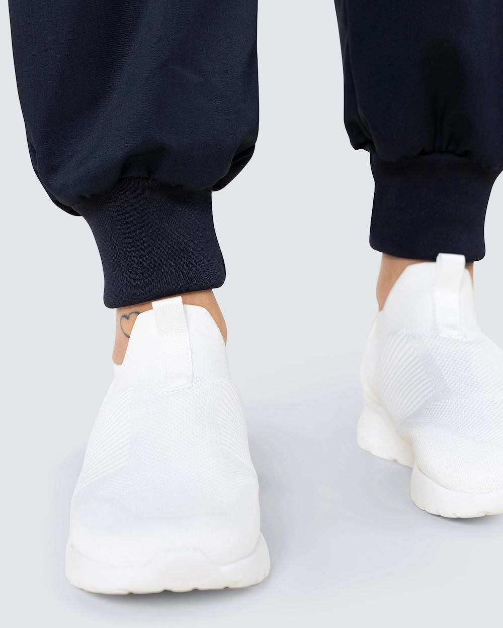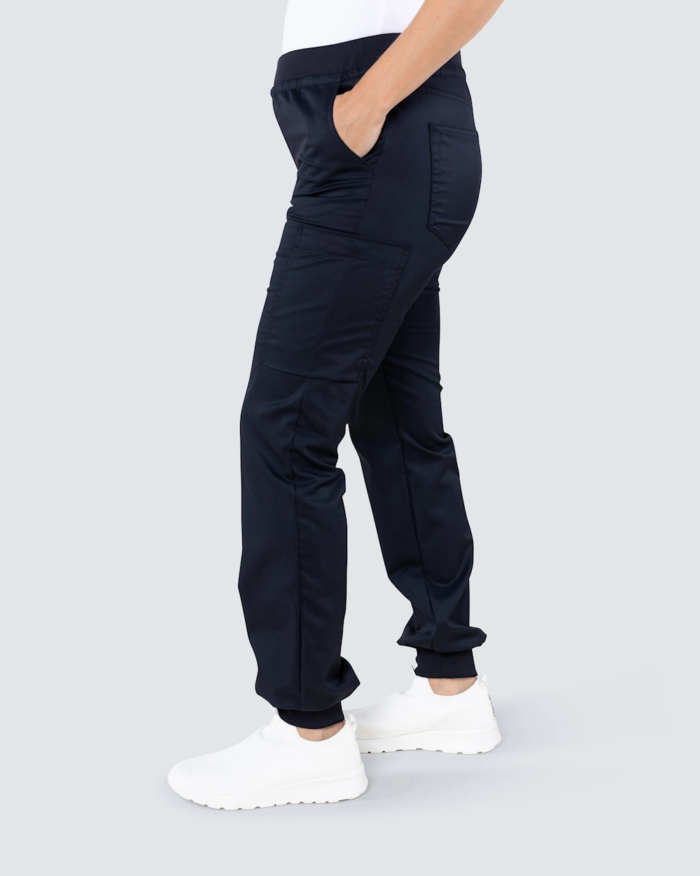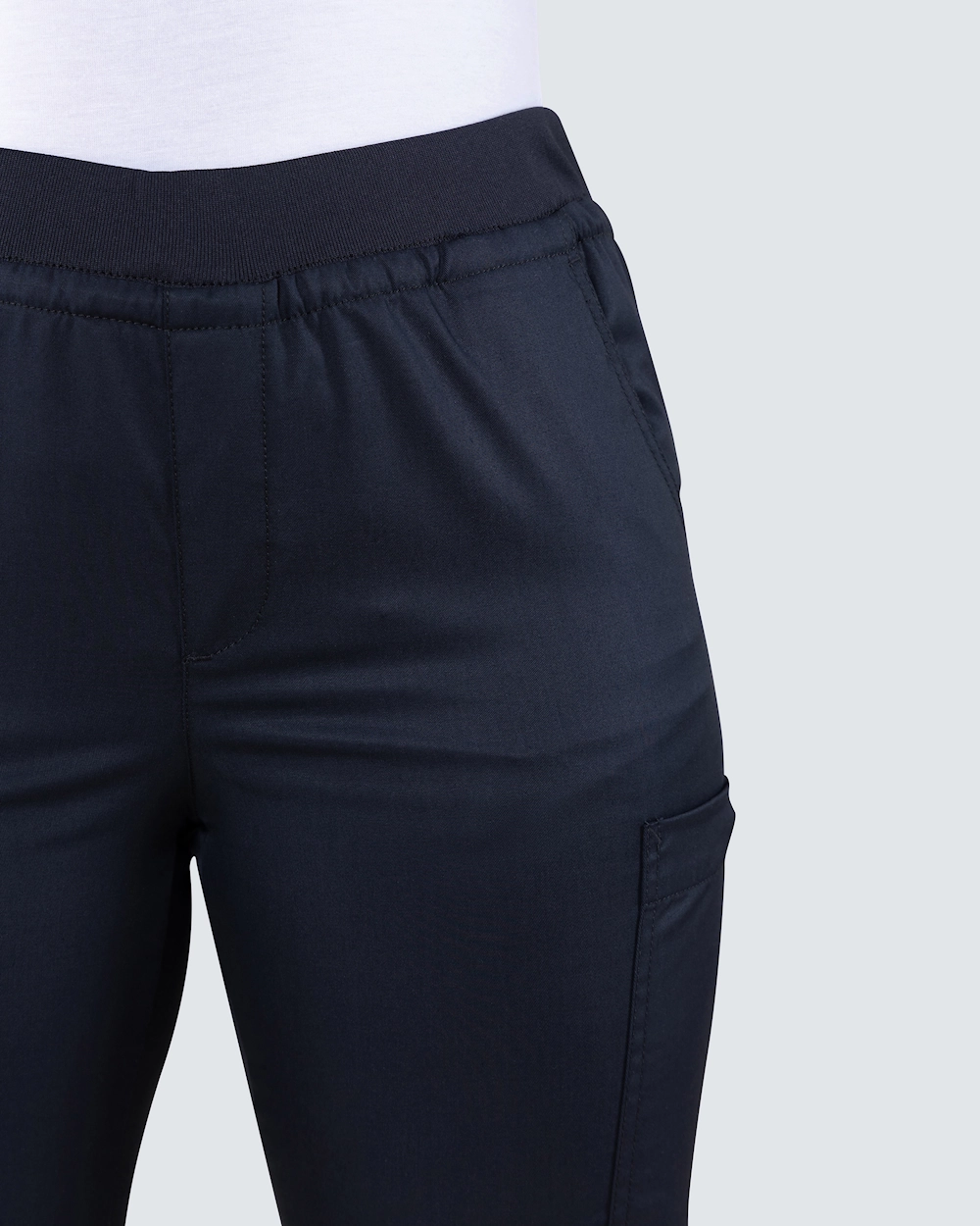 Behagelig og stretchy arbeidsbukse i pull-on modell med justerbar midjevidde takket være snøring i midjen. Disse buksene i unisexmodell har mansjetter i benenden, bredere lår- og hoftevidde og smalere benvidde. Flere lommer gjør det lettere å komme seg gjennom arbeidsdagen. Flotte bukser inspirert av street style perfekt egnet for pleiere som ønsker optimal komfort på jobben.