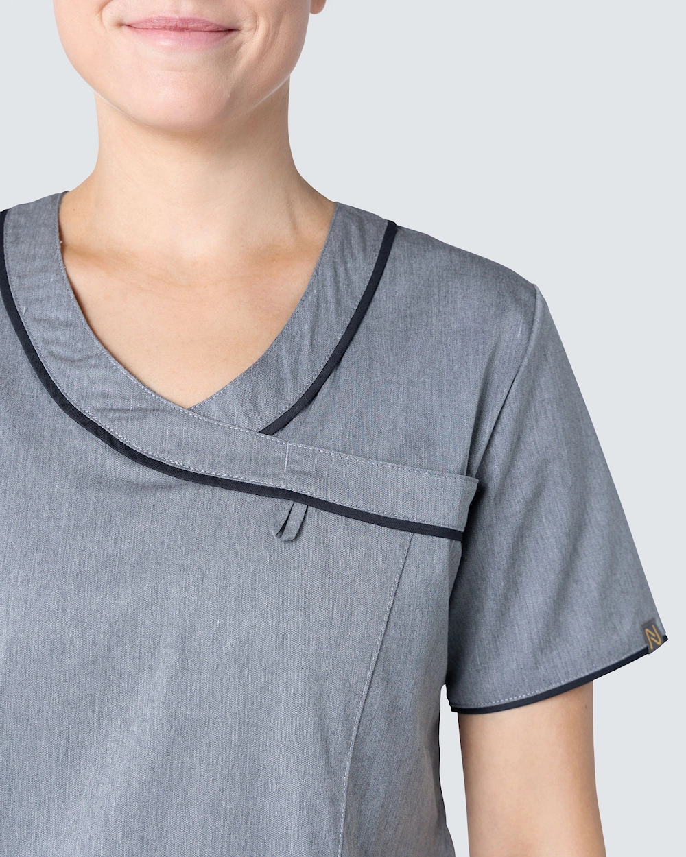Plaggene i Nytellos Harmony-kolleksjon har en melangestruktur med ensfarget passepoil. Mange funksjonelle detaljer og fokus på passform kjennetegner klærne som er tilvirkede i 50% bomull og 50% polyester. Samtlige plagg vaskes i 60C.