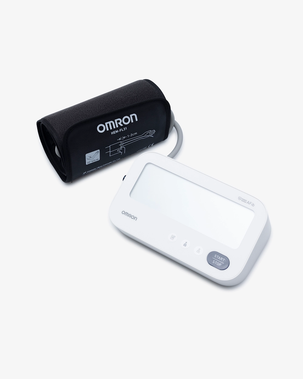 Omron M3 Comfort AFib er en pålitelig, helautomatisk blodtrykksmåler som måler blodtrykk og puls samtidig som den kontrollerer for atrieflimmer. Den måler blodtrykk og puls raskt og enkelt, og gir signaler hvis blodtrykket er høyere enn normalt.