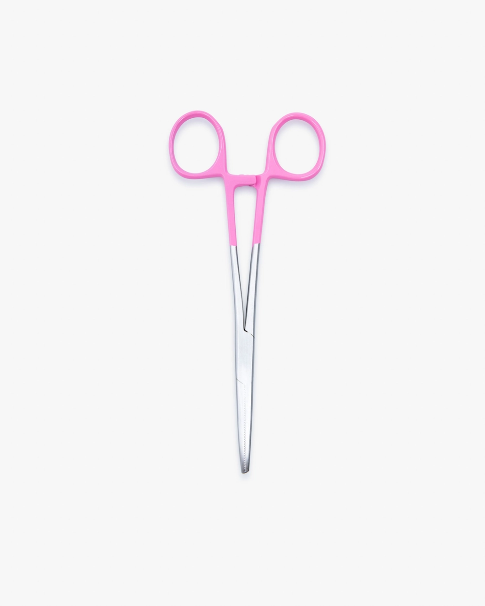 Peang- klemme i rustfritt stål med låse mekanisme som gjør at den kan låses fast når den er sammenklemt. Et bra verktøy for å holde bandasjer og annet på plass.
