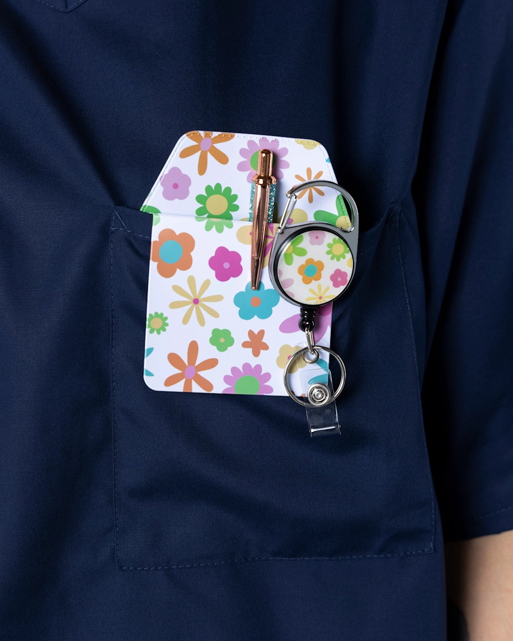Slitesterk pennelomme som beskytter mot blekklekkasje, perfekt for pleiepersonalet. Dette slitesterke tilbehøret kombinerer stil og sikkerhet, og setter farge på arbeidsuniformen din. Med mange design og farger kan du uttrykke personligheten din uten å gå på kompromiss med funksjonaliteten. Perfekt for deg som ønsker praktiske og stilige helseprodukter.