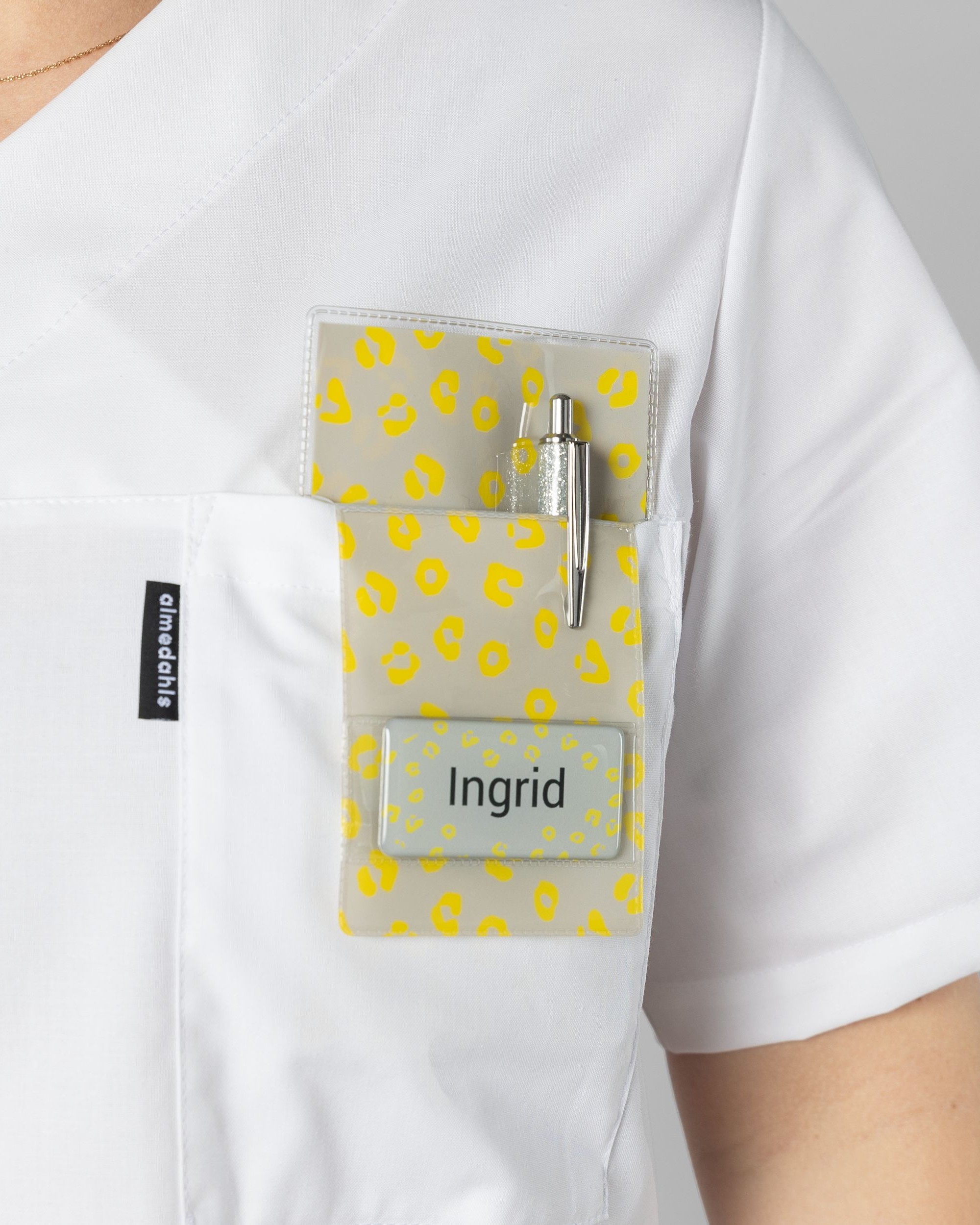 Med våre pennelommer beskytter du dine klær mot blekk samtidig som det blir en stilig detalj. På fremsiden av pennelommen finnes det en plasslomme med plass til navneskilt. Til og med baksiden har en plasslomme med plast for huske-på-lapper eller nøkkelkort.