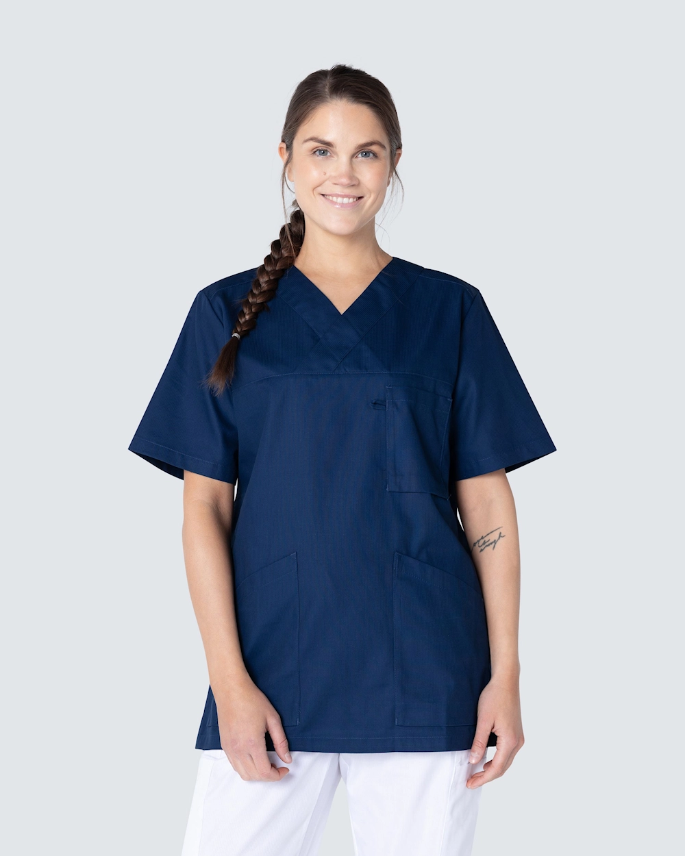Komfortabel kittel i unisex-modell med romslig og rett passform. Romslige lommer foran med plass til utstyr og diverse hjelpemidler. Brystlomme med kortholder, samt nøkkelholder og mobillomme i frontlommene.