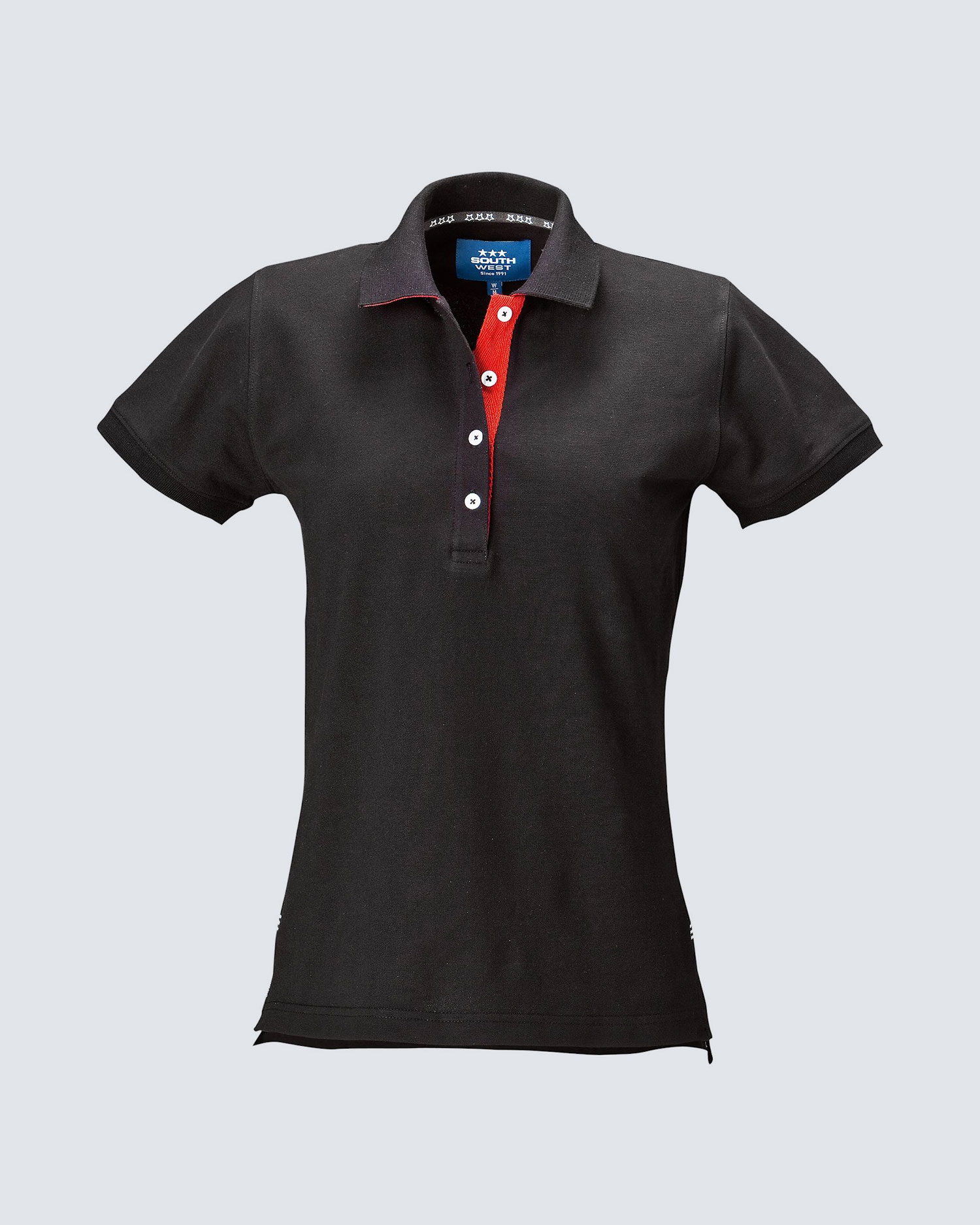 Piké med damepassform. Dekorative bånd i nakken og snittet. Halvmånsøm i nakken. Lengre knepping for et feminint utseende. Knepping med hvite knapper og fiskbensmønster på innsiden i en annen farge og en subtil brodert tone-i-ton. Broderte dyr i forskjellige farger over sprint.