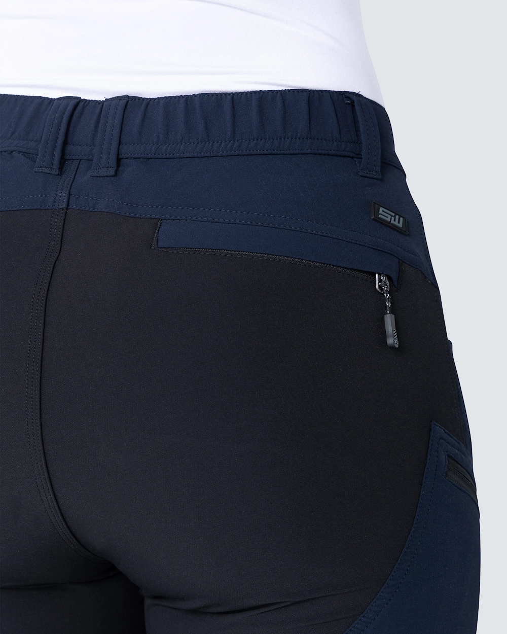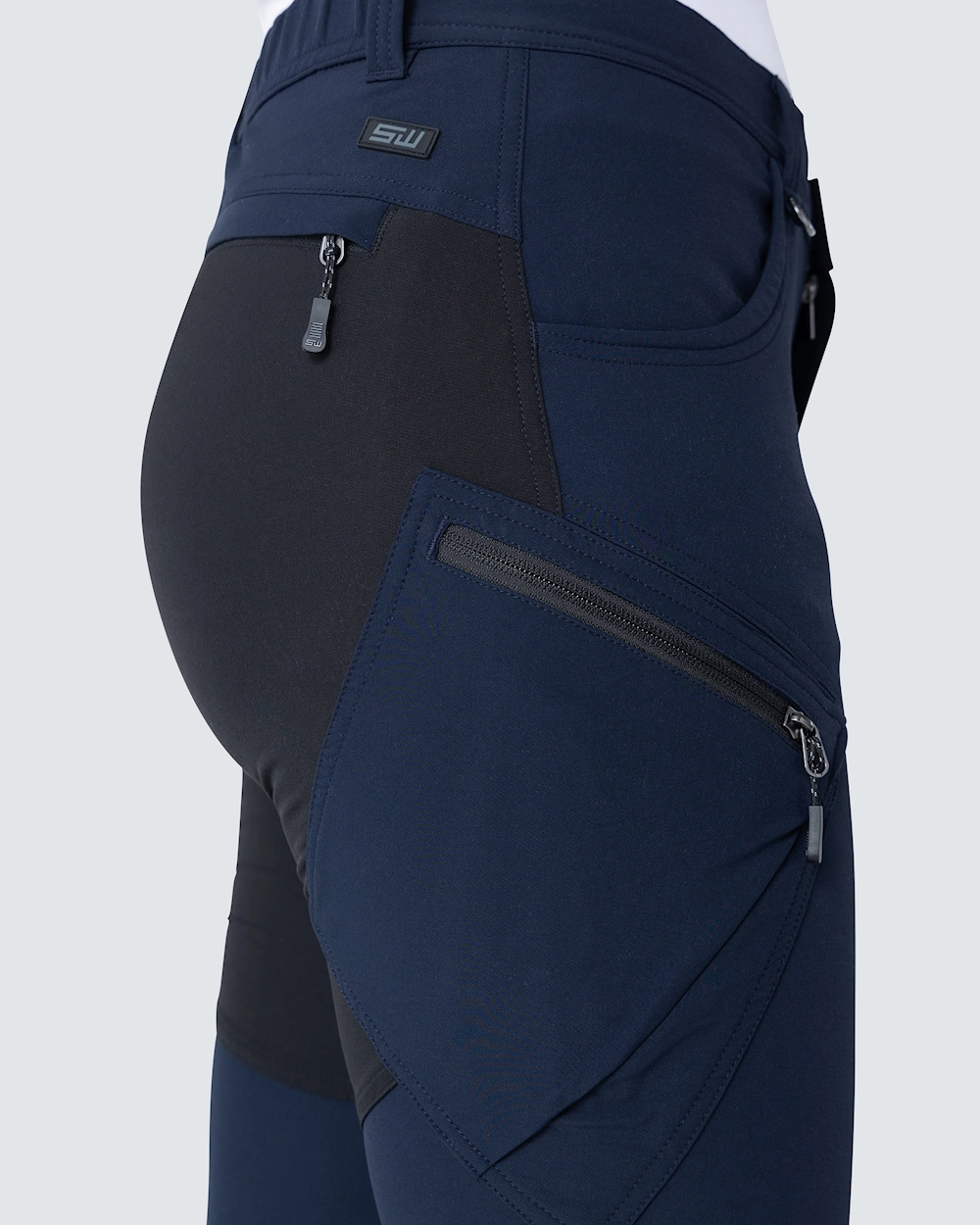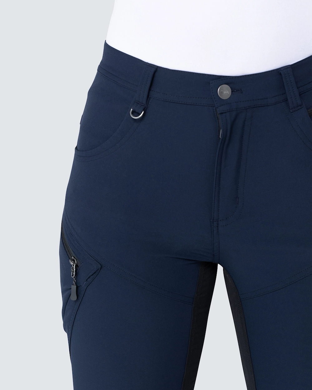 Praktiske 5-ficks stretchy stretch breeches for optimal bevegelsesfrihet og komfort. Benlommer og baklomme har glidelåser utstyrt med glidelås i refleks. Knapper nederst på foten for fotkontroll. SW gummi etikett tilbake på ok.