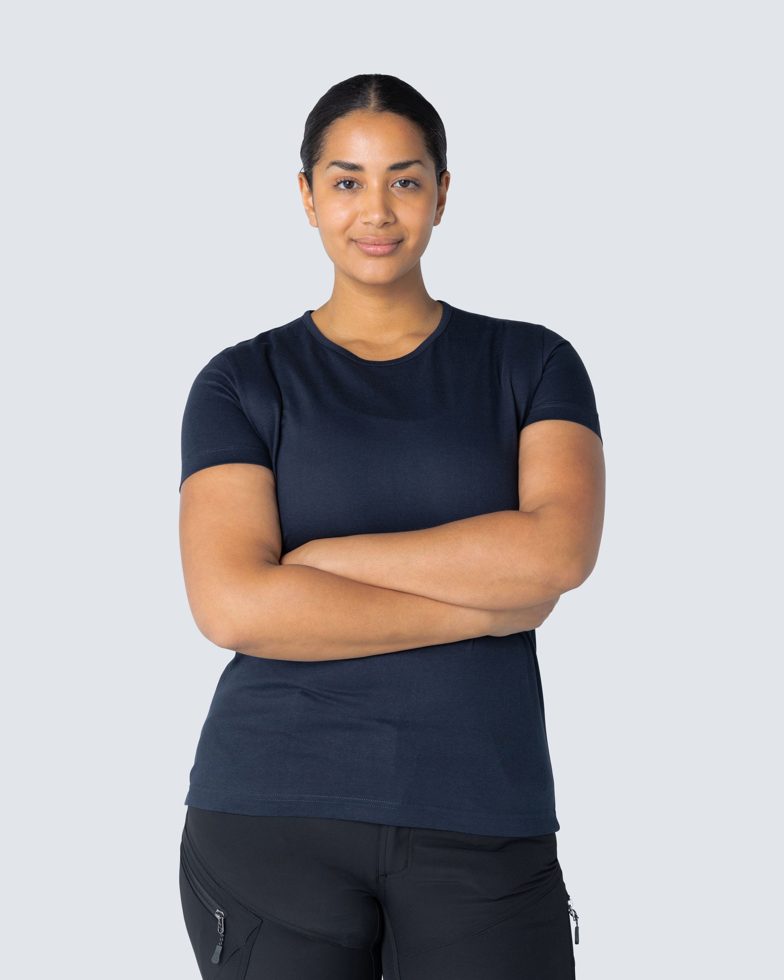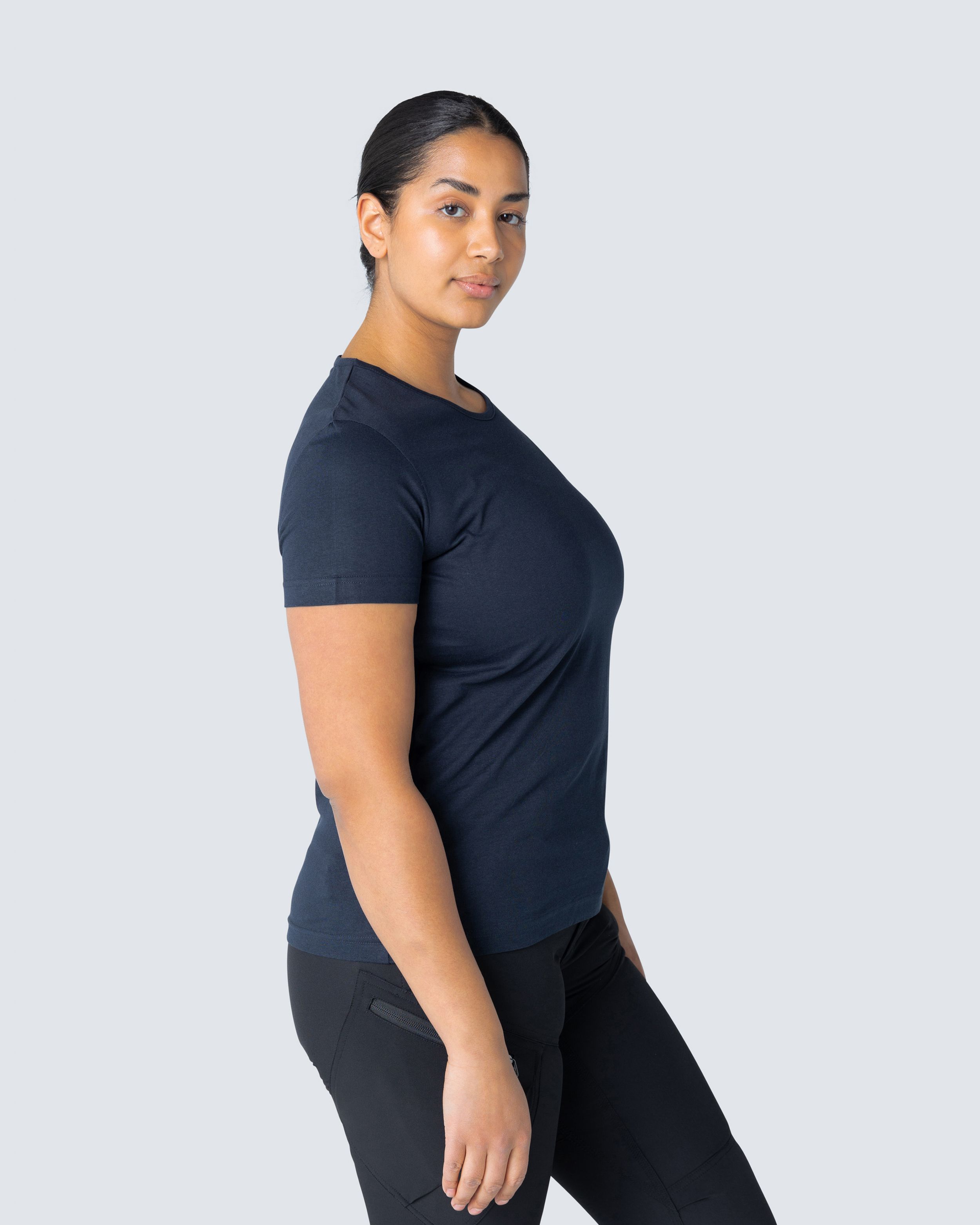 T-skjorte i silikonvasket single jersey. Figursydd dame-passform med rund hals