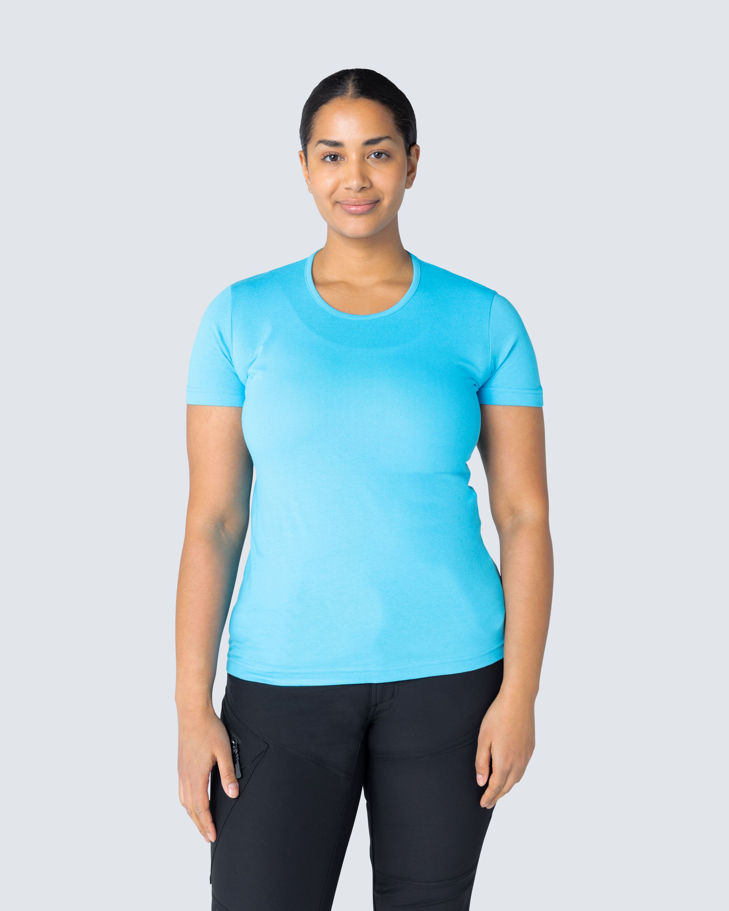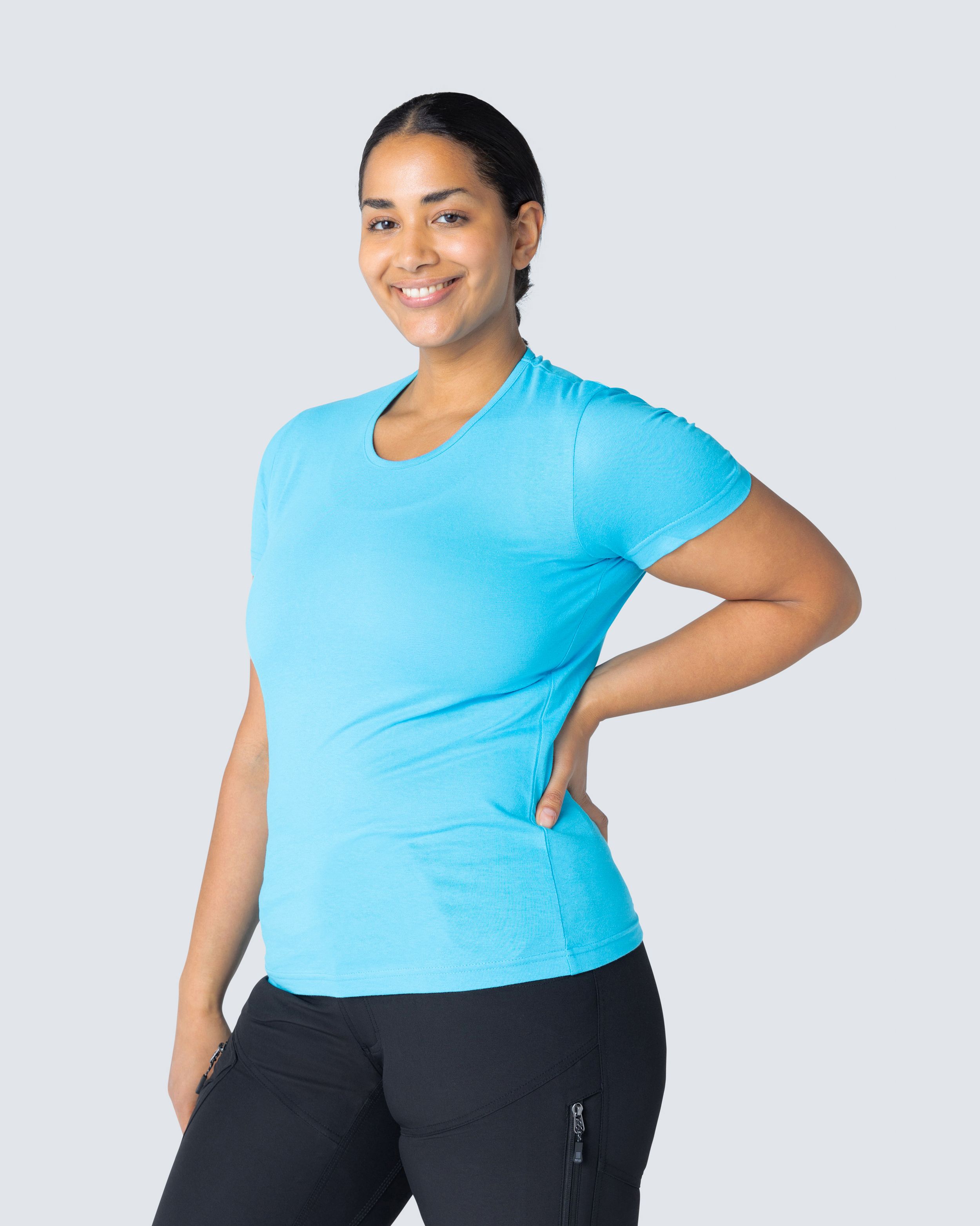 T-skjorte i silikonvasket single jersey. Figursydd dame-passform med rund hals.