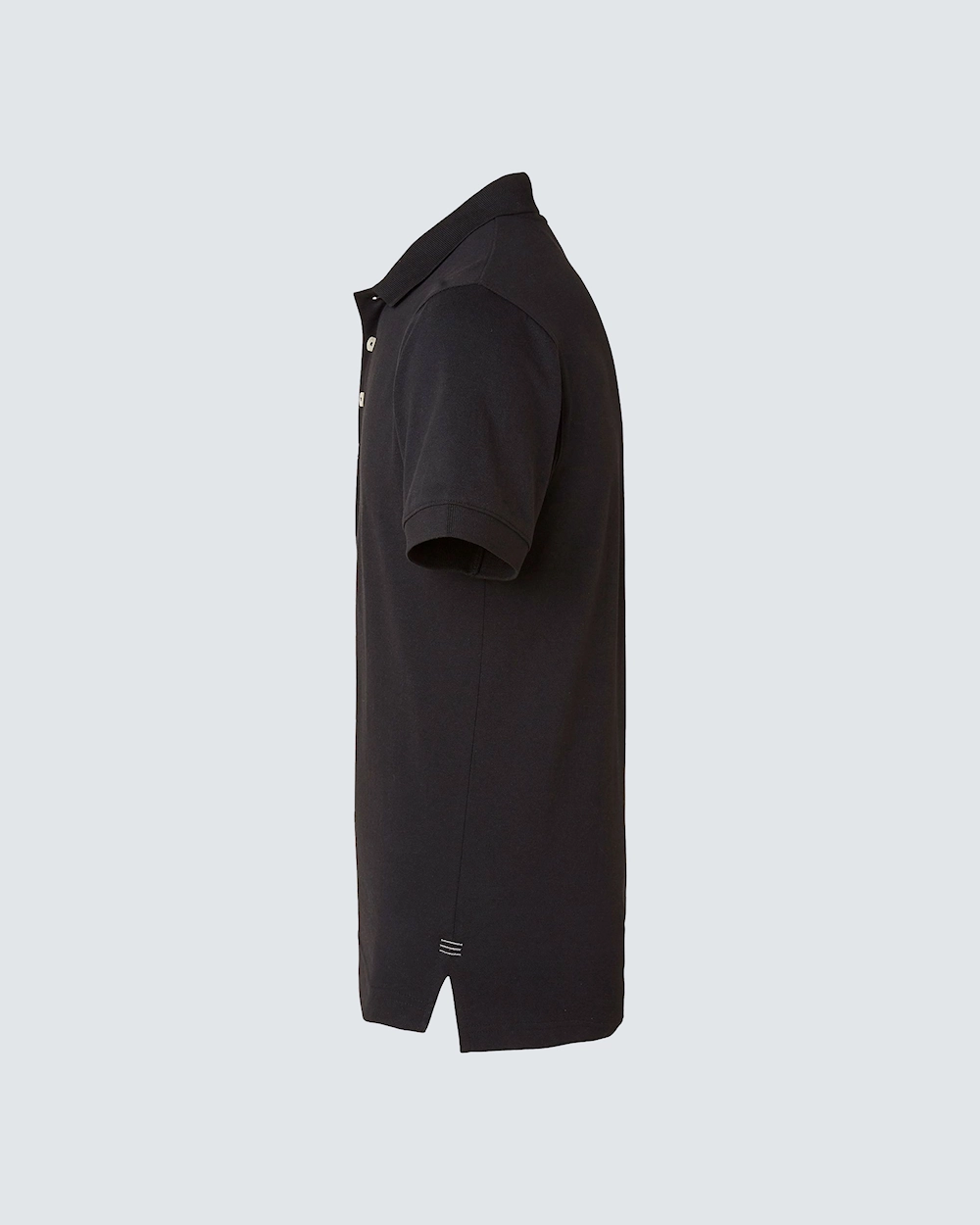 Piké med knappestolpe i kontrasterende farge og hvite knapper. Forsterkede sømmer. Kontrastfarge i nakke og brodert ved splitt. Ribbestrikket krave og mansjetter.