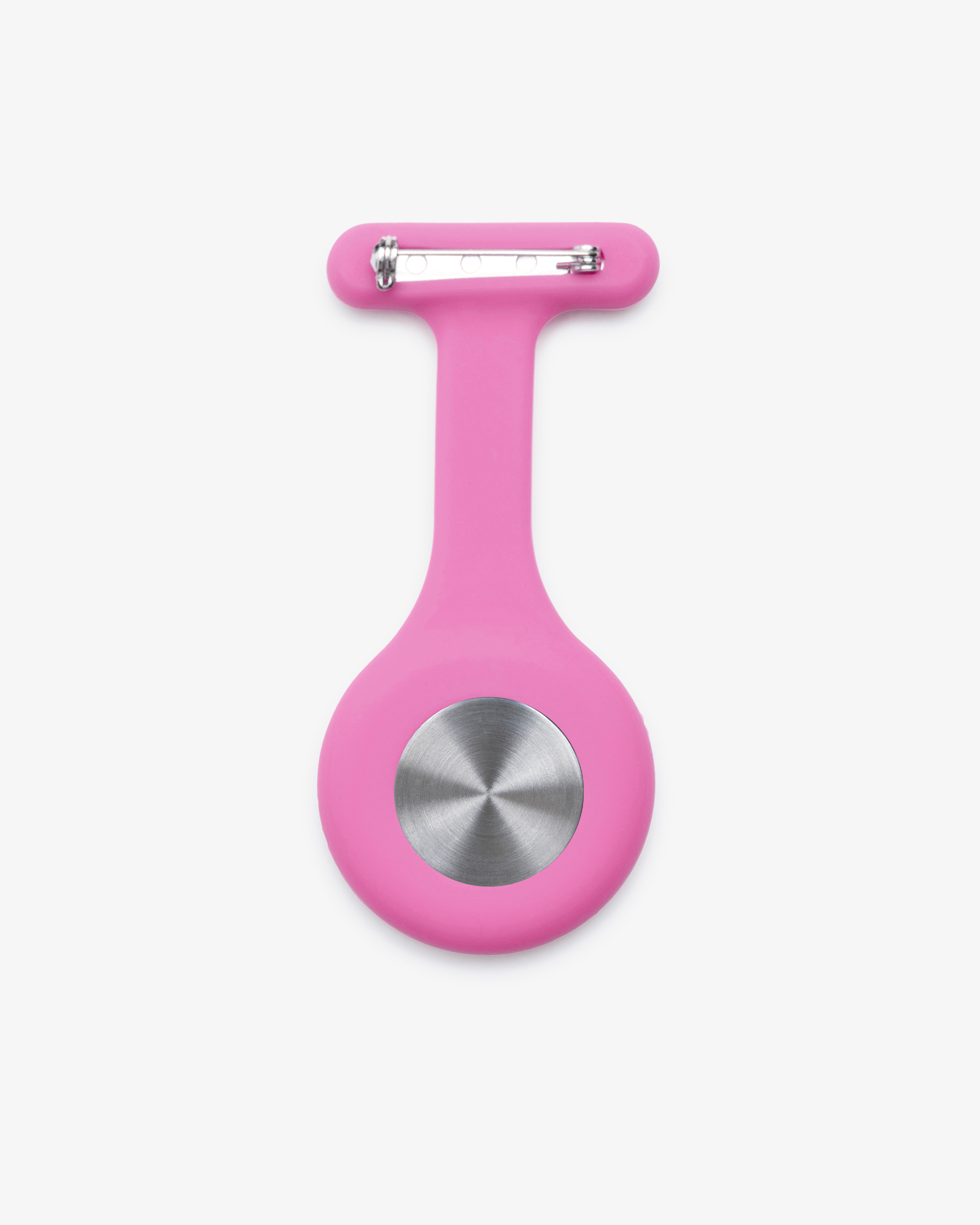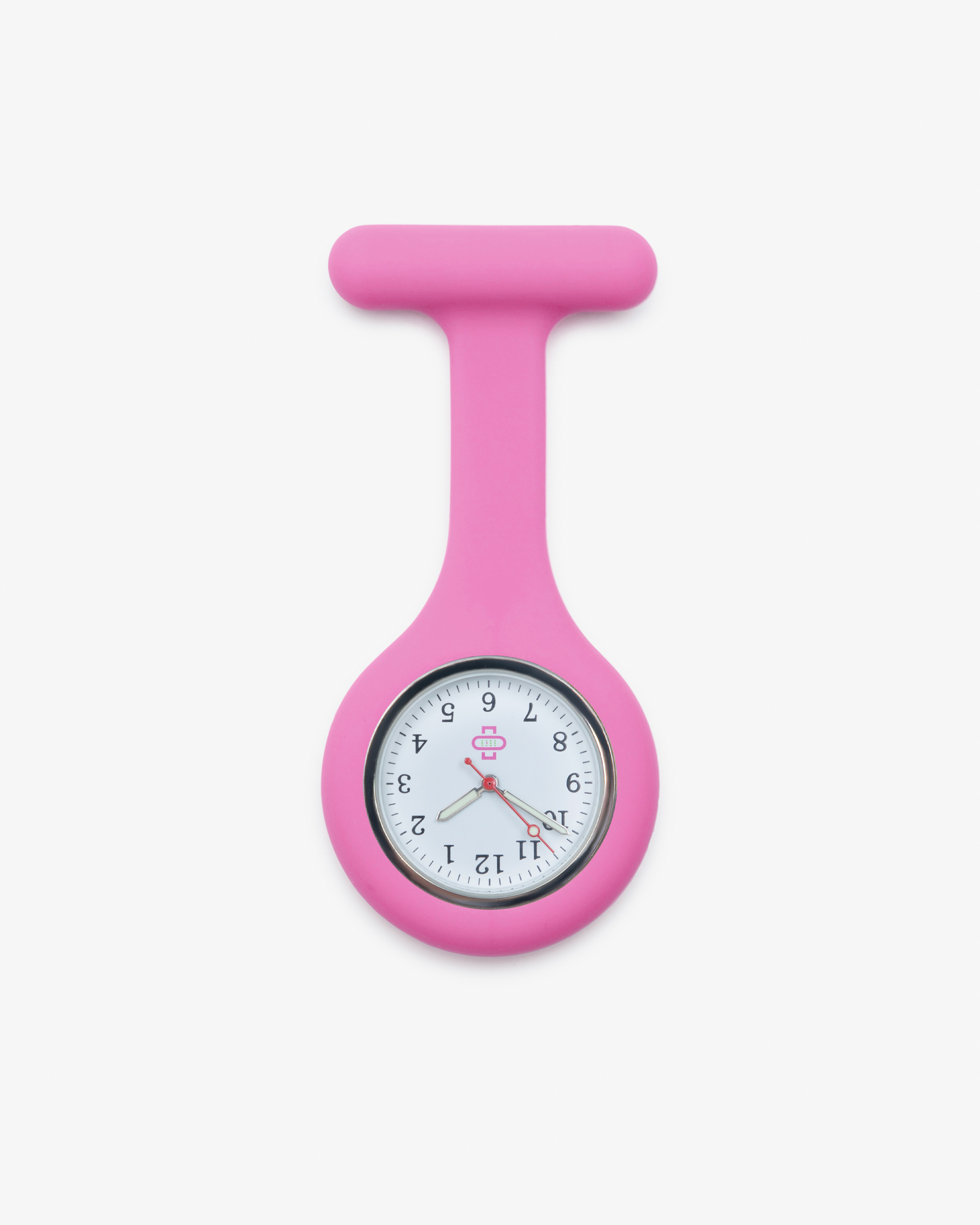 Klokken festes enkelt med en sikker nål og sitter stabilt på uniformen gjennom hele vakten. Det myke silikonskallet er både behagelig og enkelt å rengjøre – ideelt i miljøer der hygiene er avgjørende. Den tydelige klokken gjør det enkelt å holde oversikt over tiden, selv i høyt tempo.