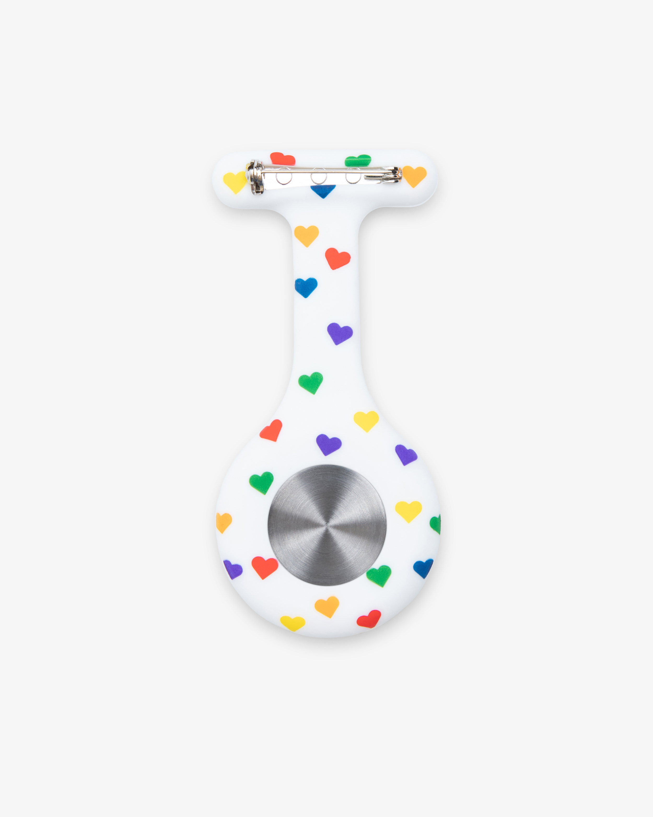 Sykepleierklokken festes enkelt på ønsket plagg med hjelp av en sikkerhetsnål. Klokkens skall er i silikon, noe som gjør det til en perfekt og hygenisk alternativ for deg som jobber i helsetjenesten,